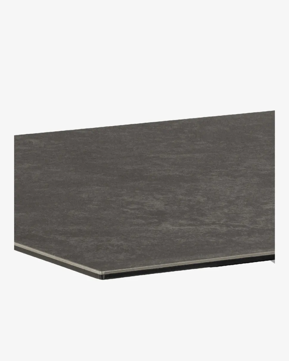 Heaven spisebordet kombinerer et eksklusivt udtryk med praktiske materialer. Den sort/grå keramiske bordplade har et sofistikeret stenmønster og er både ridsefast og nem at vedligeholde – ideel til hverdag og gæster.