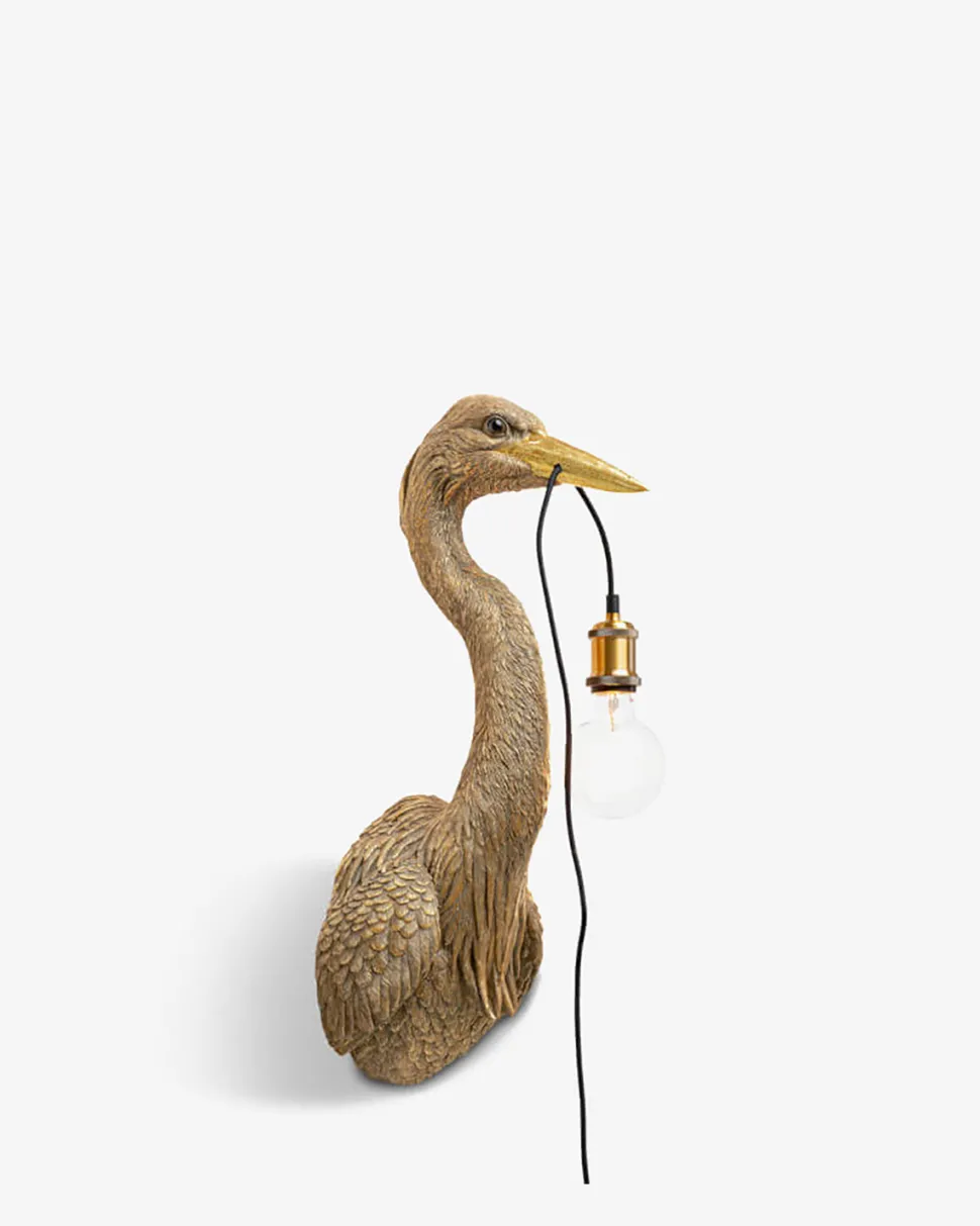 Skøn hejre væglampe der helt sikkert vil skabe blikfang og opmærksomhed i din stue eller hvor du end trænger til lidt sjov i din indretning.