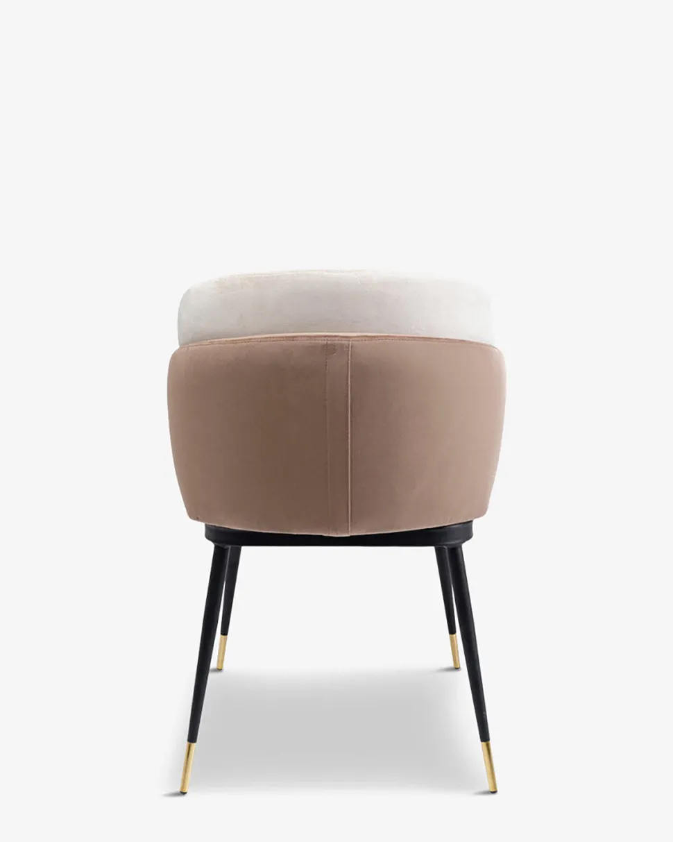 Stolen er polstret i ryg og sæde og rygdelen er beklædt med kunstlæder i brun, som giver en flot kontrast til den beige farve.