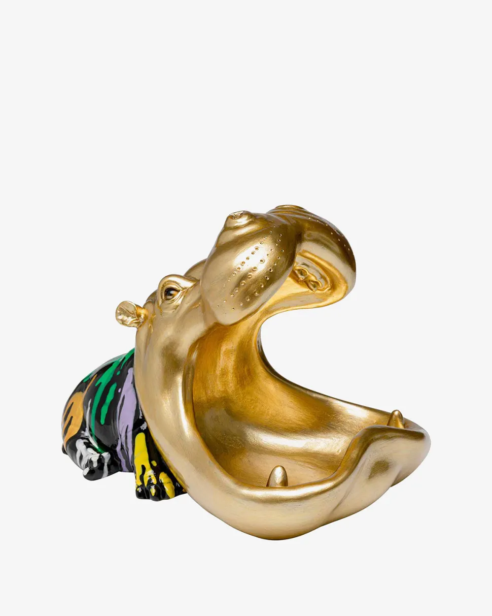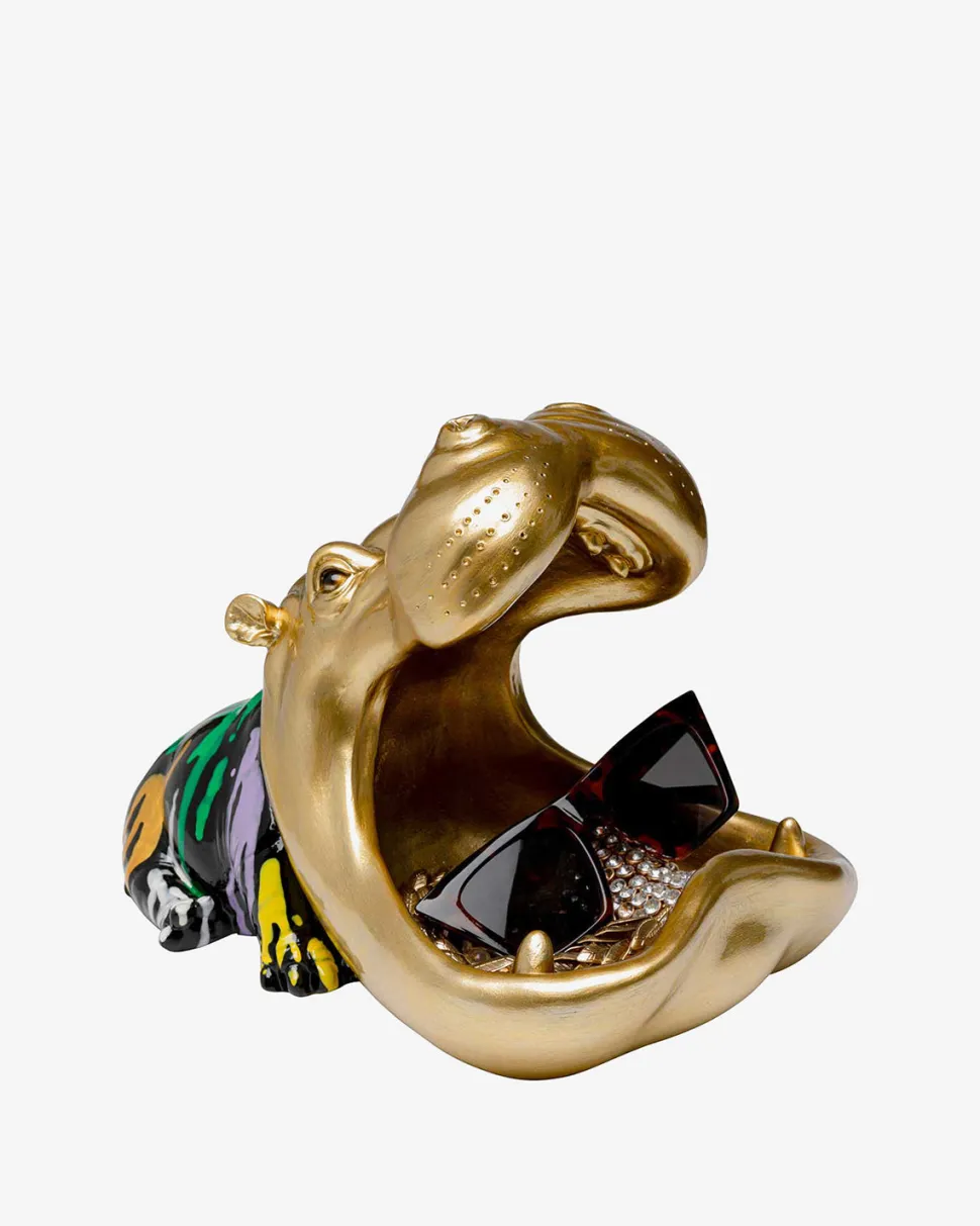 Gylden dekorativ flodhestfigur med farverige detaljer
