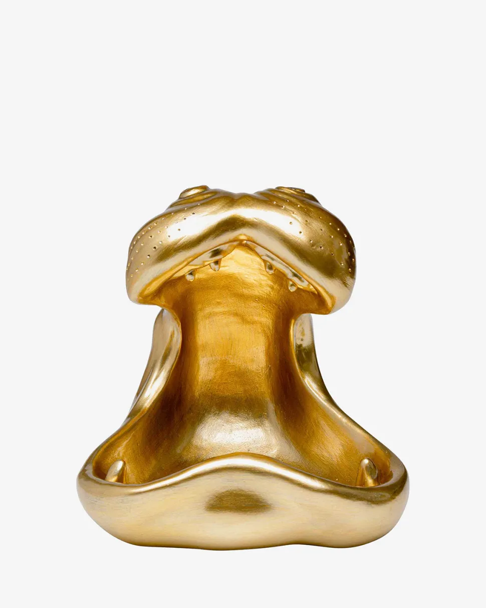 +Den dekorative figur imponerer med sin kontrast mellem en skinnende guldfinish og farverige graffitidetaljer