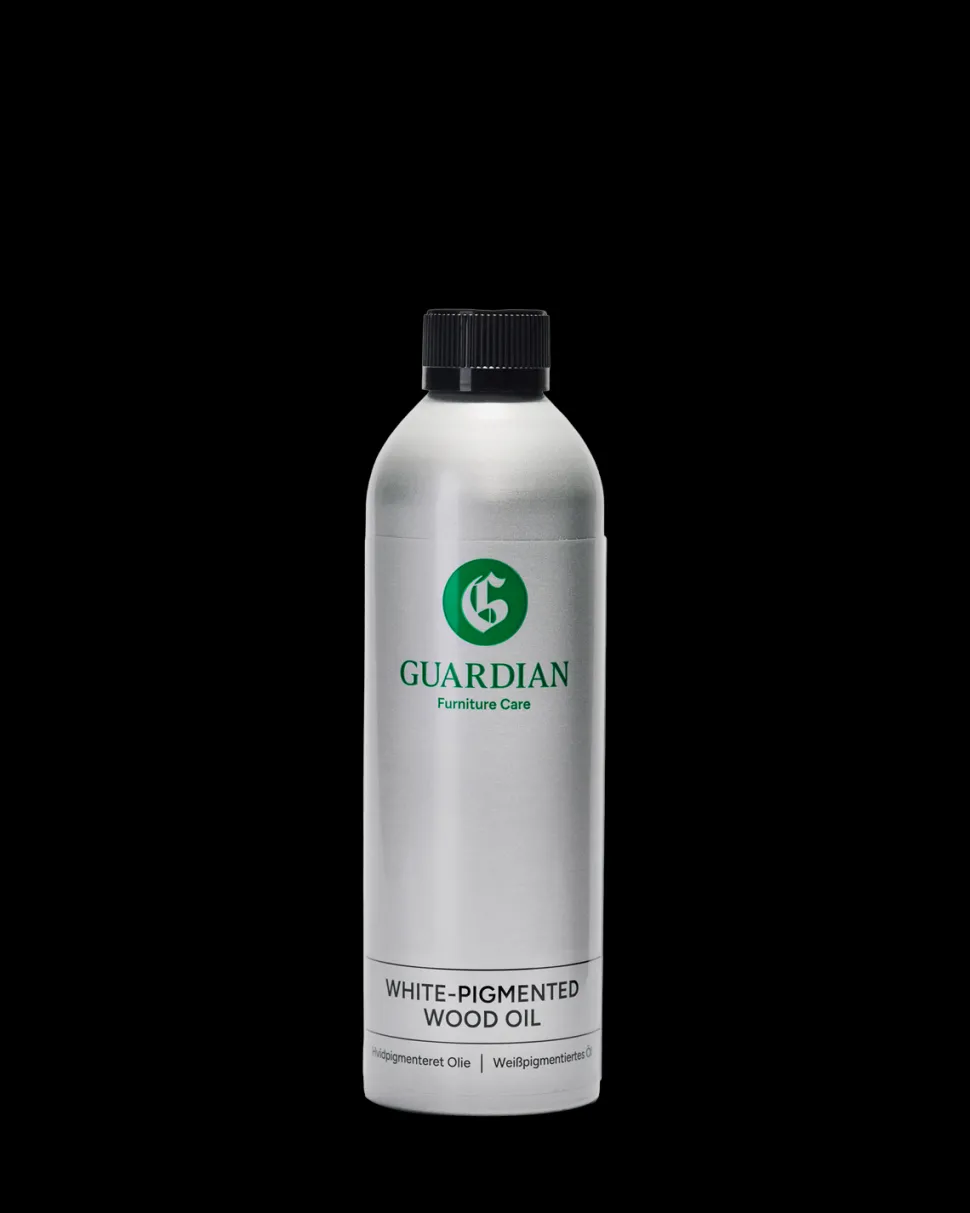 Guardian hvidpigmenteret olie anvendes til oliering af ubehandlet træ, hvor der ønskes et hvidt pigment eller til pleje af i forvejen hvidpigmenteret olieret træ. Olien indeholder ingen opløsningsmidler og er baseret på de fineste reneste olier, virker vandafvisende og beskytter træet mod udtørring.Olien er testet af Teknologisk institut og tildelt indeklimamærket.Olien påføres i et jævnt fint lag med en fnugfri klud eller svamp i træets åre retning. Eventuel overskydende olie tørres væk med en tør klud.Træet bør behandles 3-6 gange årligt afhængig af brug og luftfugtighed.