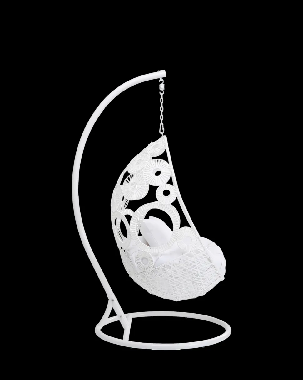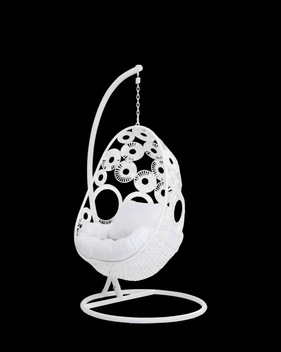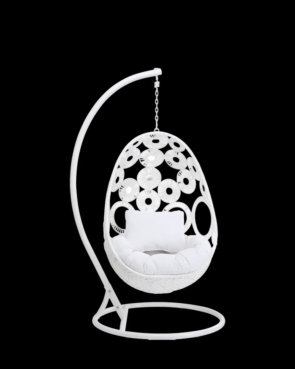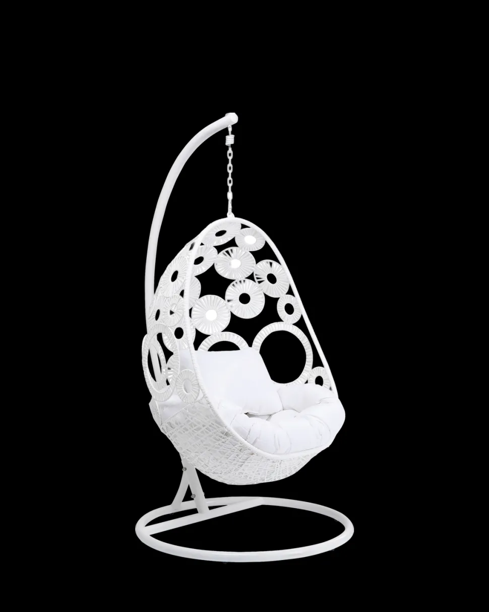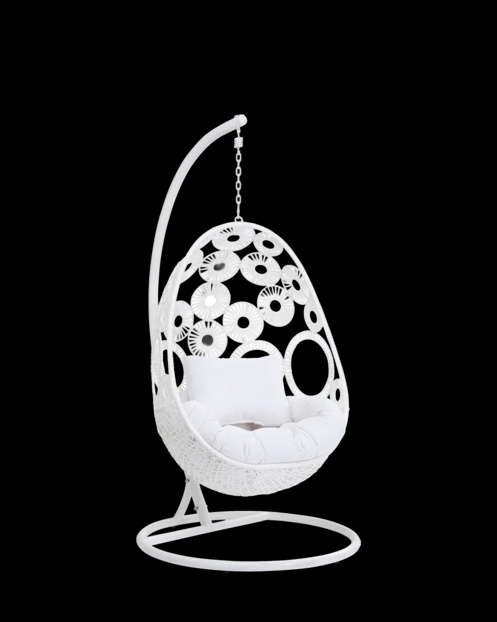 Ibiza hængestolen i hvid skaber en lys og elegant loungefornemmelse i haven, på terrassen eller i et stort opholdsrum. Det luftige flet og den svævende konstruktion giver stolen et let og stilfuldt udtryk med boheme-karakter.