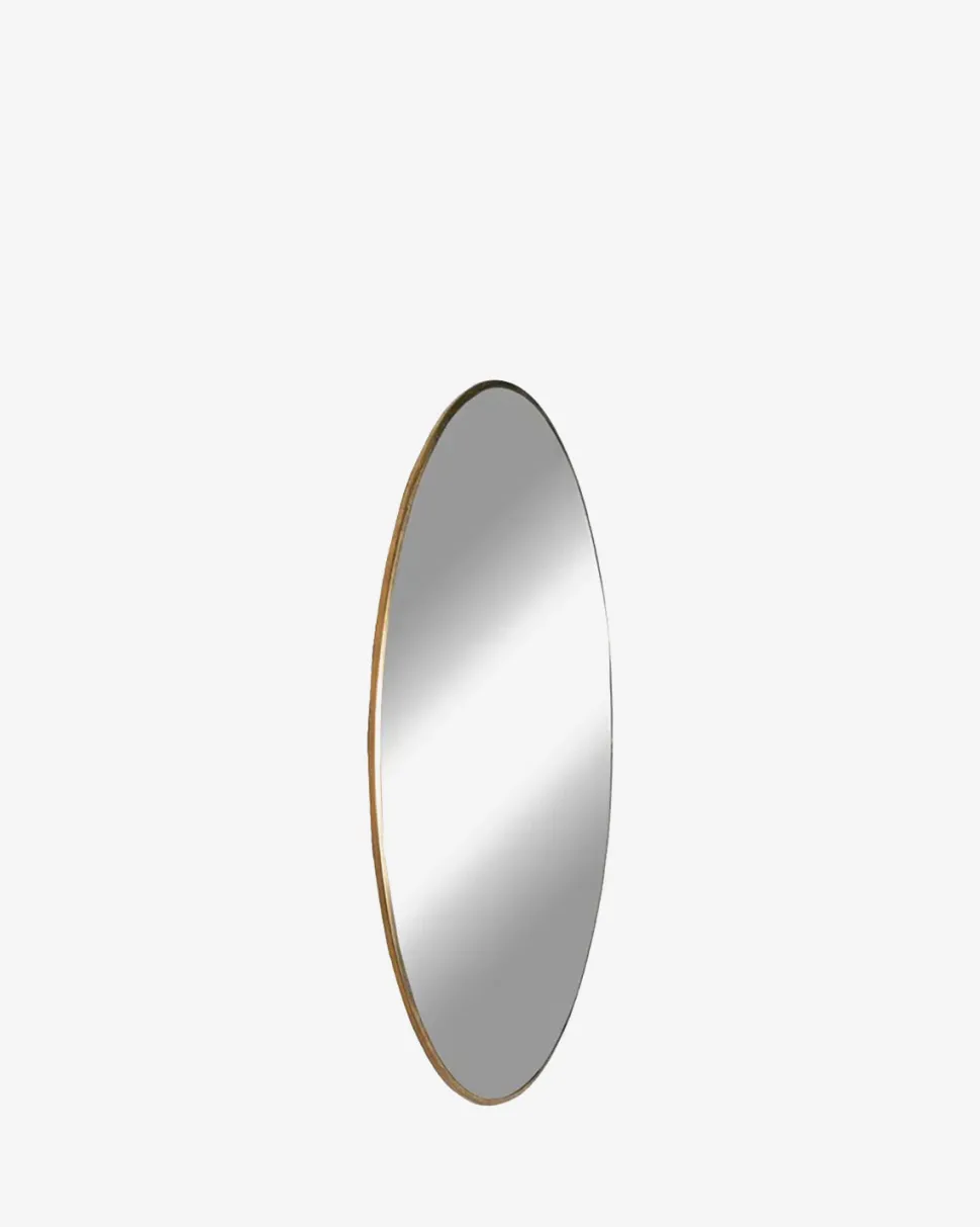 Det enkle design og den varme messingfinish gør spejlet velegnet til både entré, badeværelse eller som dekorativ detalje i stuen.