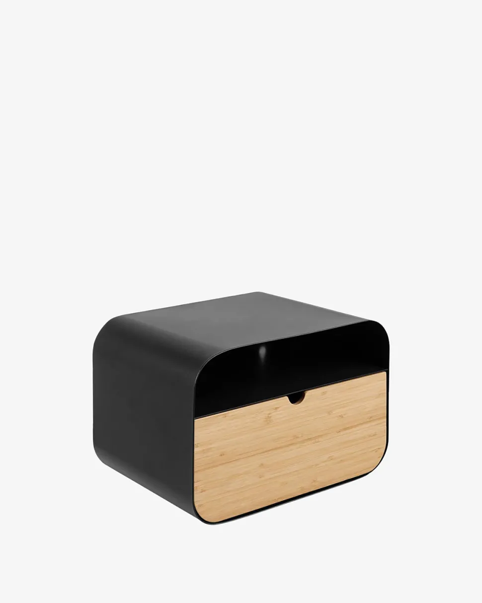 Joliet Natbordet er produceret i sort metal med en natur træskuffe. Perfekt til stilfuld opbevaring ved siden af sengen.