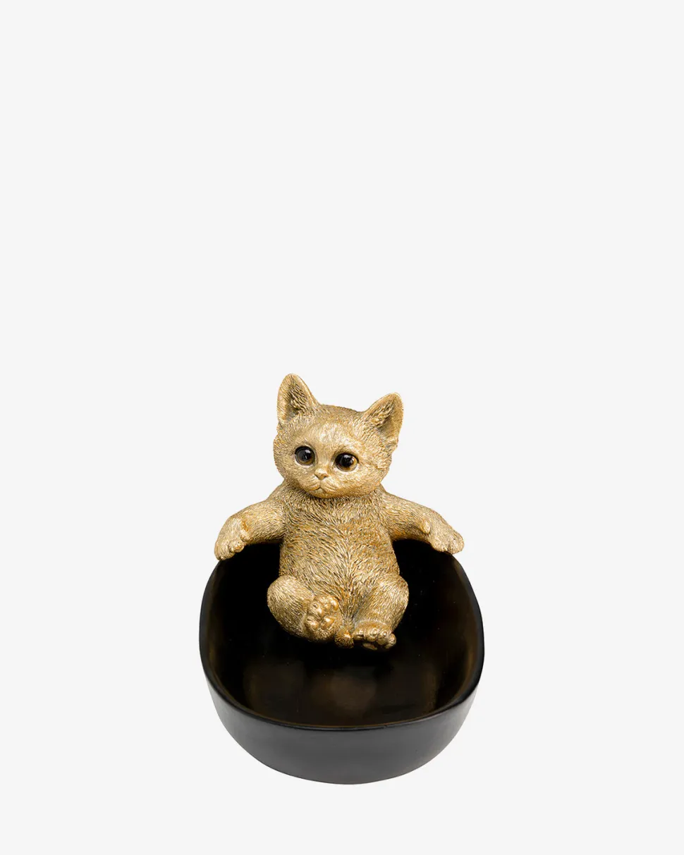 + Sort skål med guldfarvet kattefigur