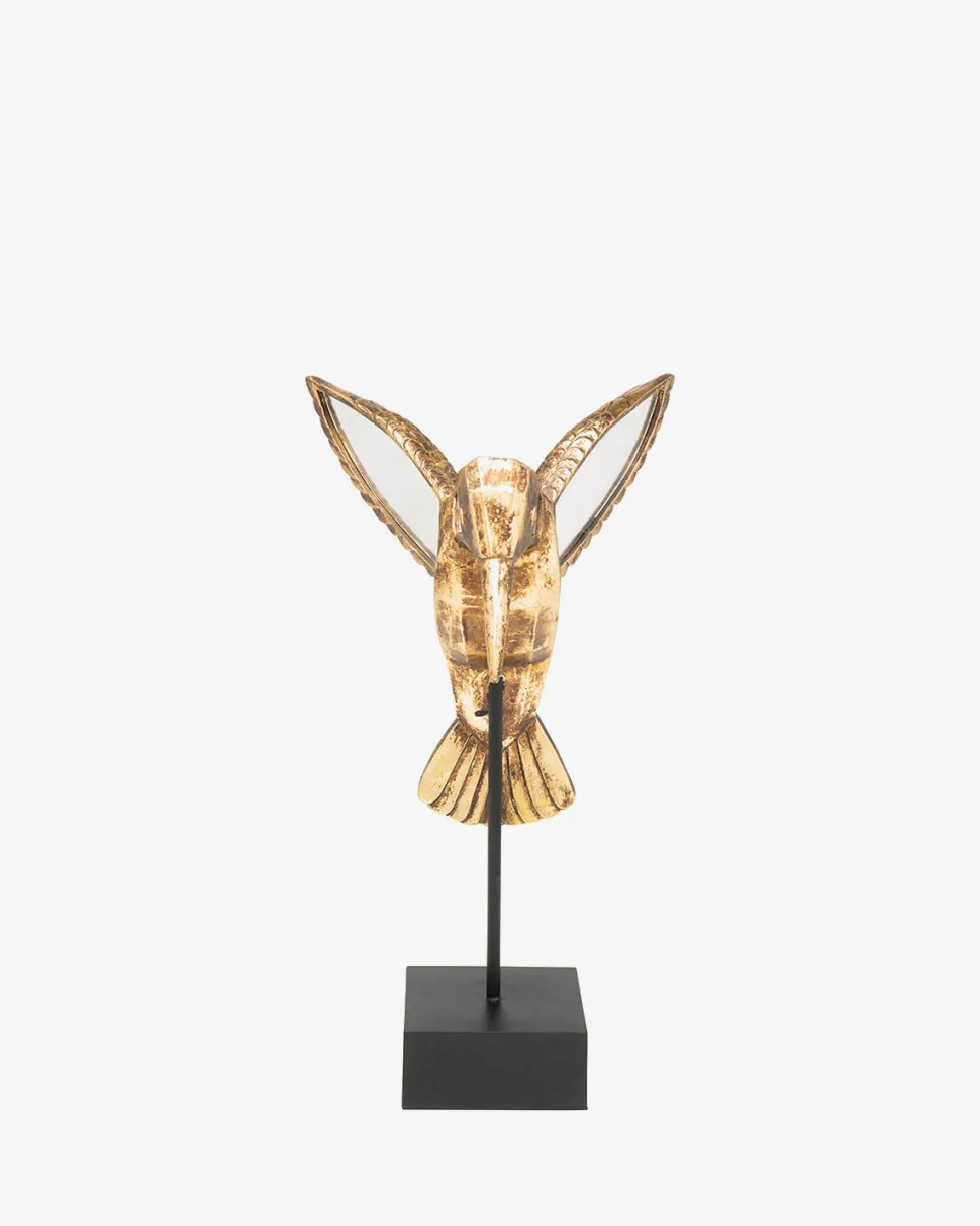 Kolibri spejl figuren kombinerer et let og yndefuldt motiv med et eksklusivt udtryk. Figuren er udført i guldfarvet finish og dekoreret med små spejle, der reflekterer lyset og giver en levende og glitrende effekt.