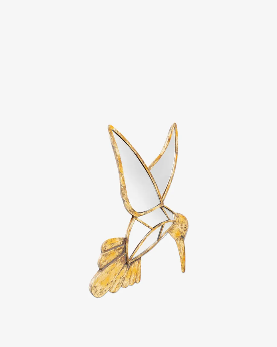 Det smukt skinnende kolibri-motivspejl er et rigtigt blikfang til din væg. Spejlglasset og den glitrende, gyldne ramme gør dekorationen til en elegant favorit. Fuglespejlet er velegnet til både moderne og klassisk interiør og passer perfekt ind i urban-jungle-stilen. Kolibrien og/eller andre dyrespejle i serien er også et godt valg som gave.