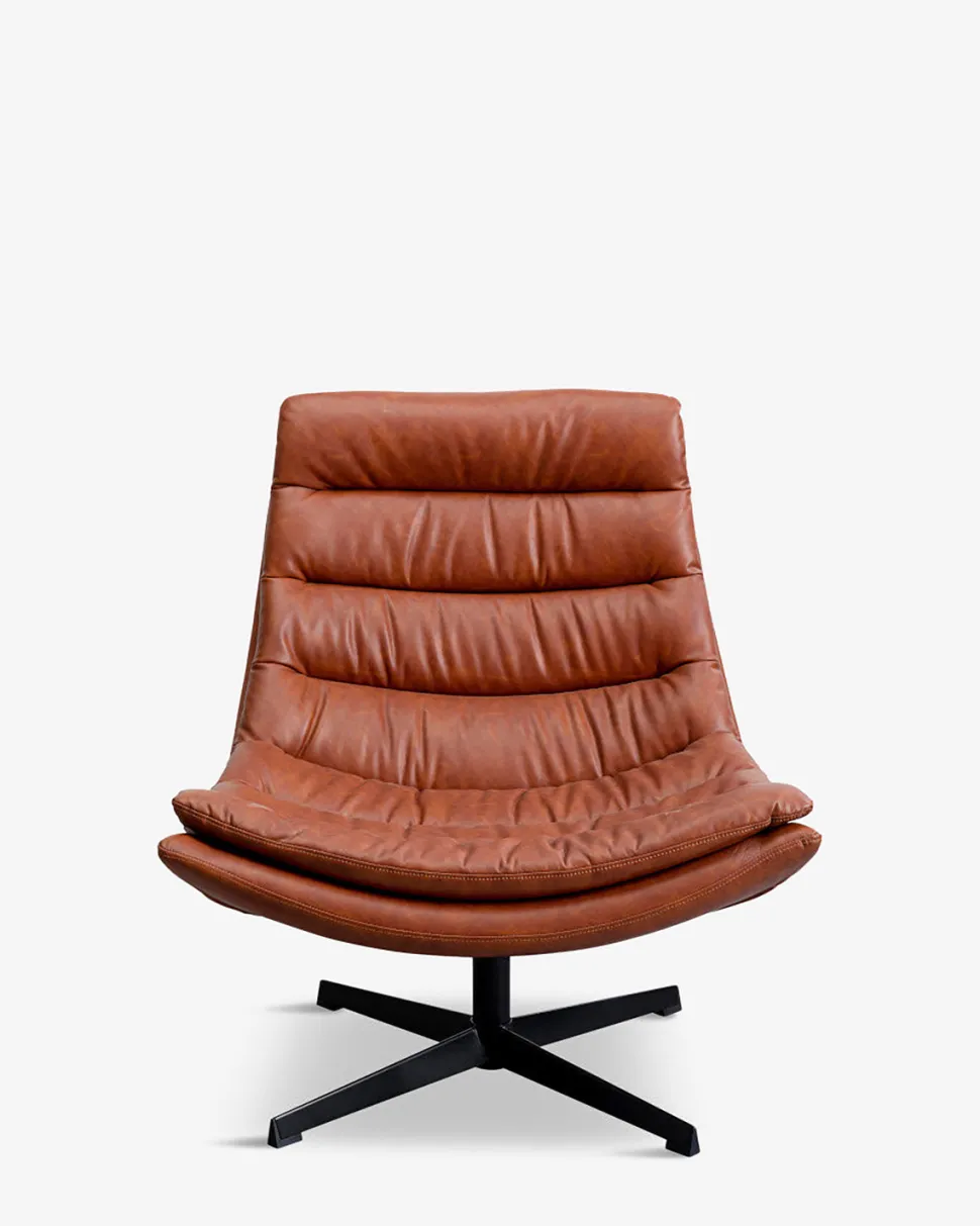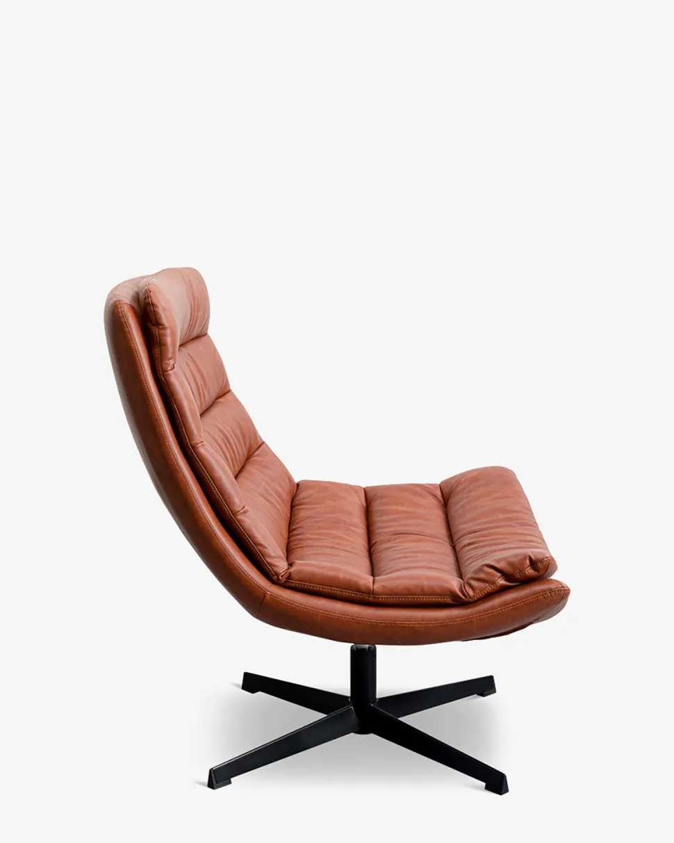 Lænestolen har sort drejestel, og det lækre læderlook i kraftig kvalitet giver en vedligeholdelsesfri og slidstærk overflade.