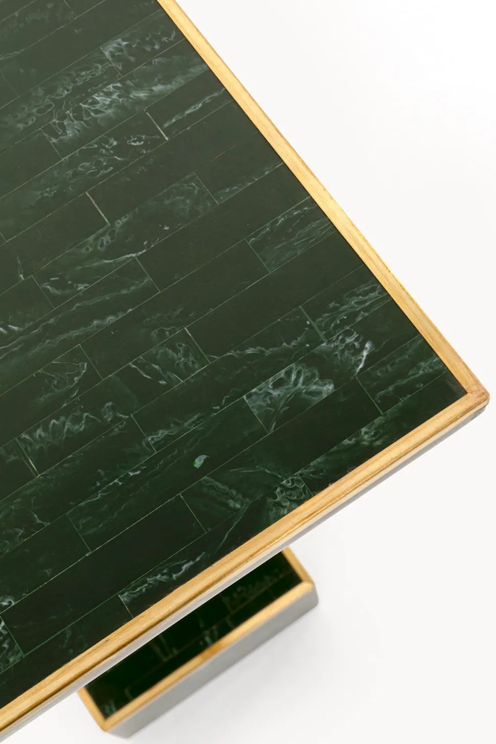 Loco Loco sidebord – grønt mosaik marmorlook med guldkanter. Dekorativt sidebord i smalt format.