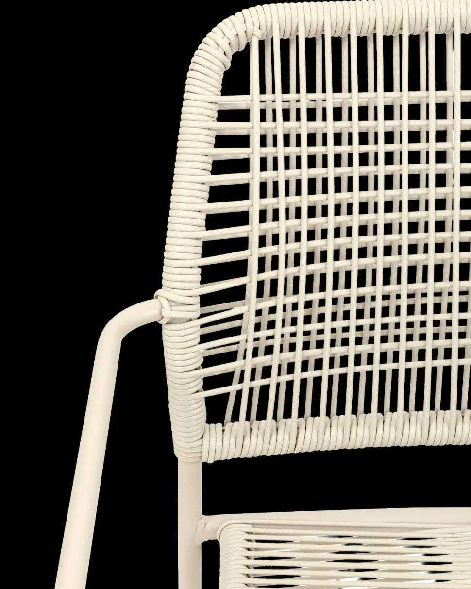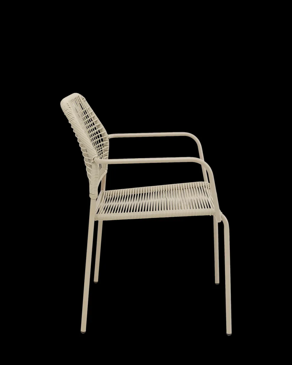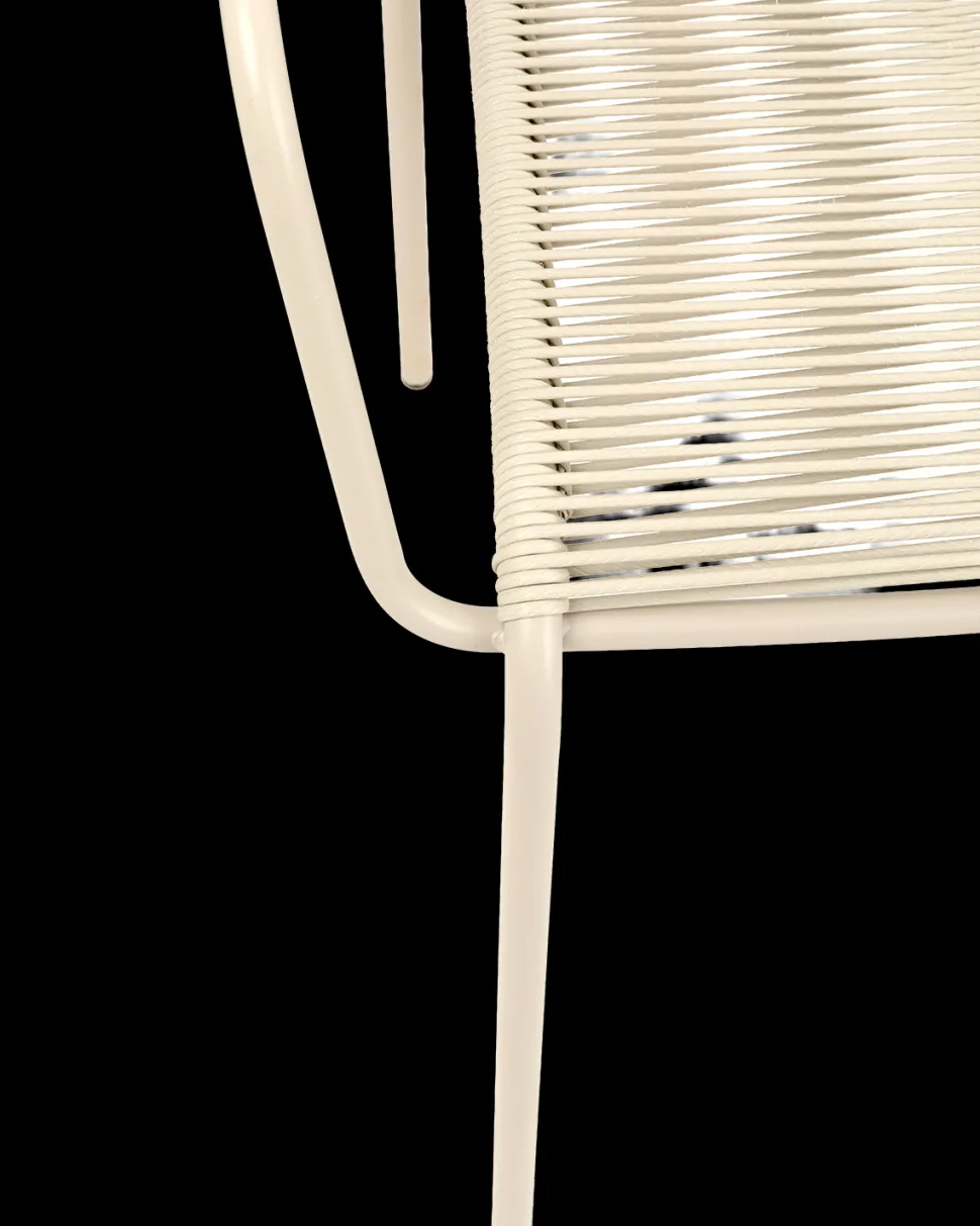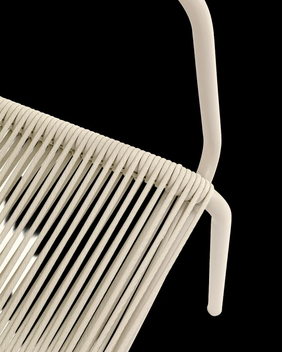 Flettet er lavet i slidstærkt polypropylen, der gør stolen nem at vedligeholde og langtidsholdbar. Stel og armlæn i pulverlakeret stål sikrer stabilitet og giver stolen et moderne og stilrent look.
