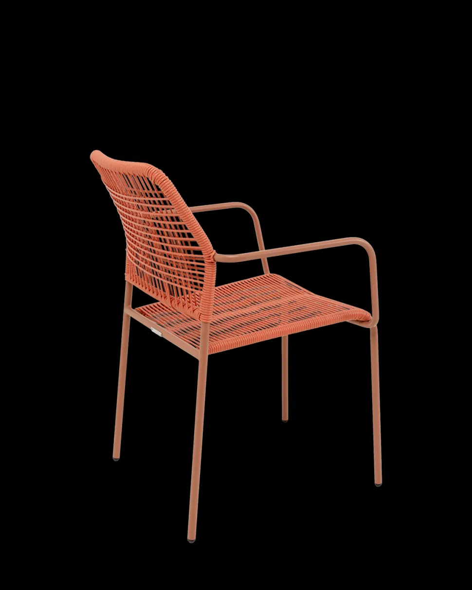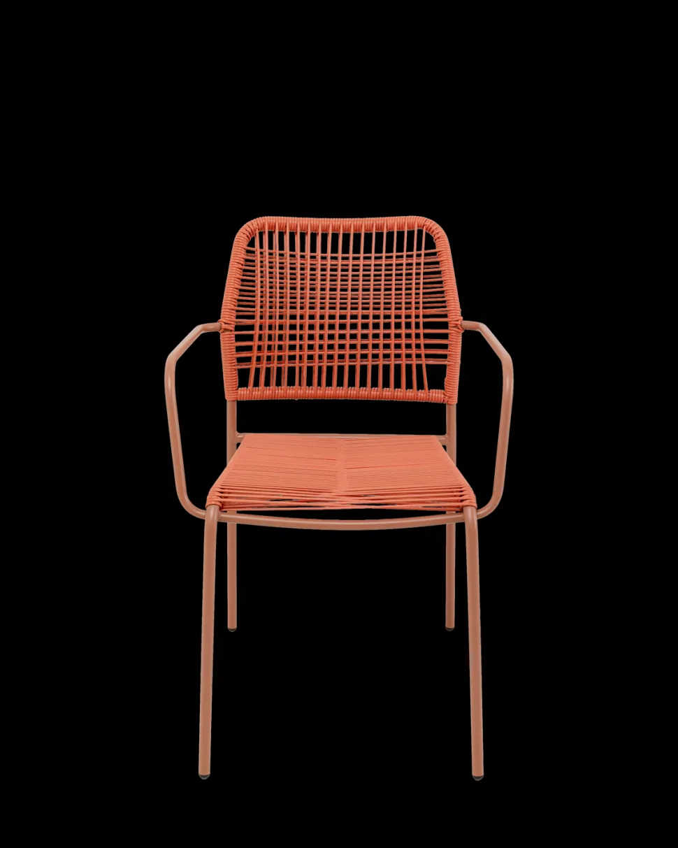 Flettet i polypropylen er slidstærke og nemme at vedligeholde, mens det pulverlakerede stålstel giver solid stabilitet. Stolen er designet til at kunne stables, så den nemt kan opbevares, når sæsonen skifter.
