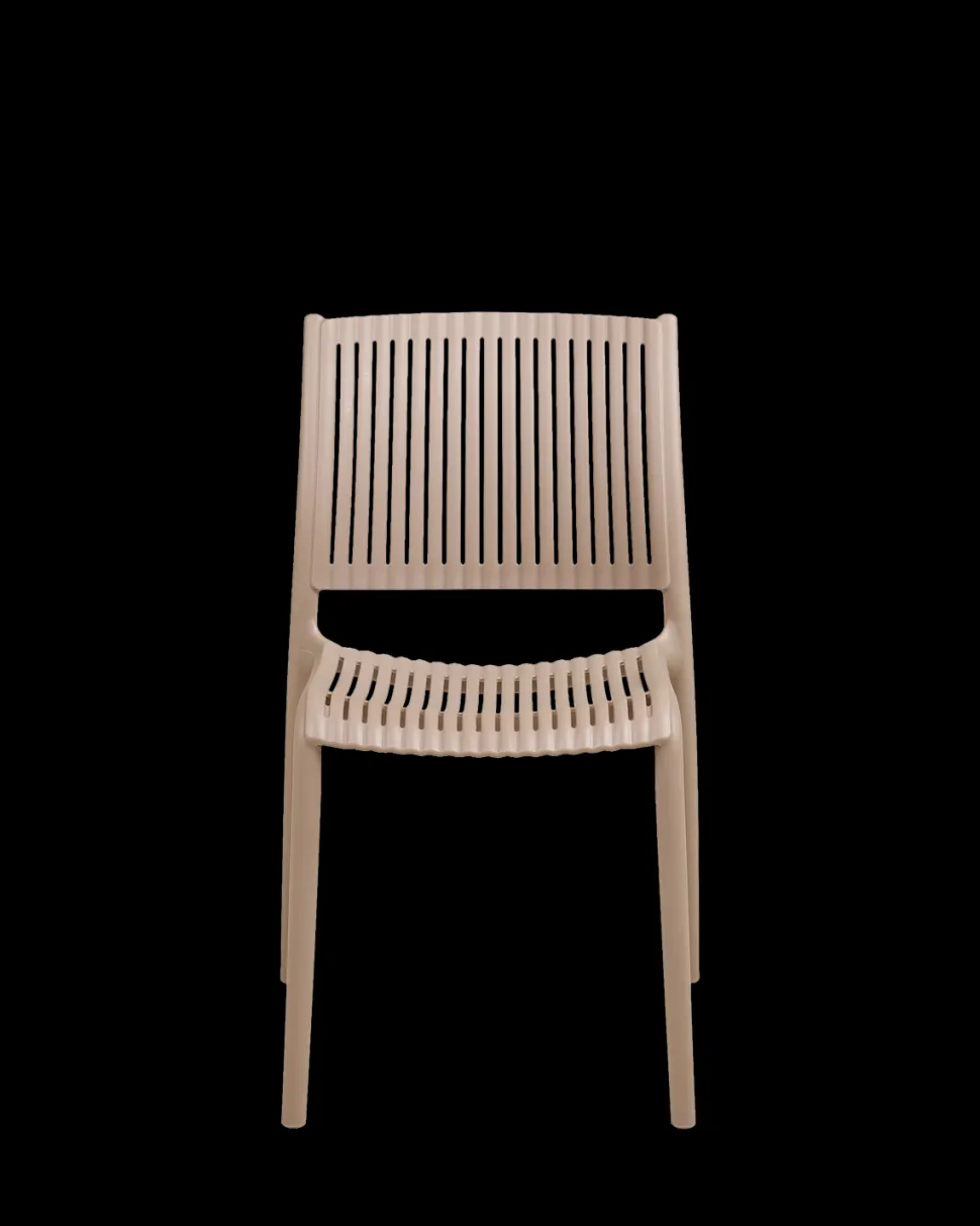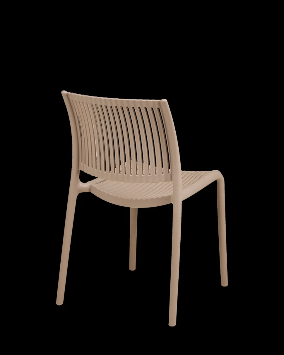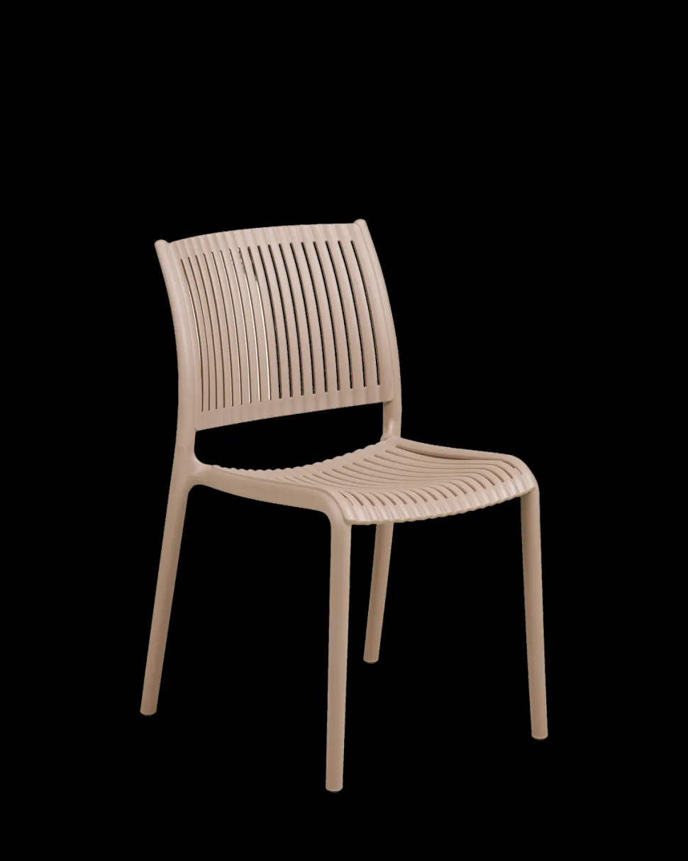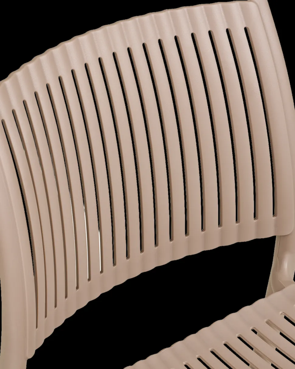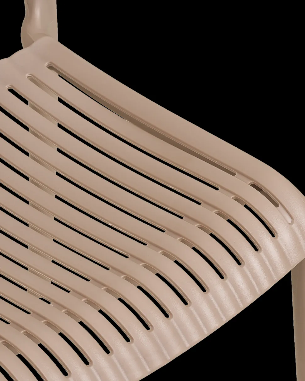 Manzano havestol i taupe, fremstillet i UV-resistent PP plast. Stabelbar og vedligeholdelsesfri.