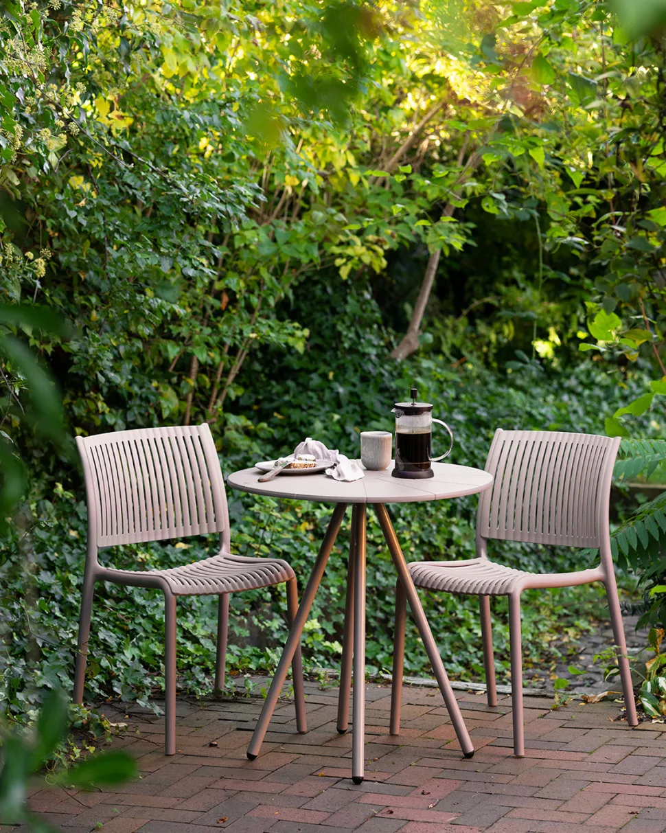 Manzano er stabelbar, hvilket gør den nem at opbevare og ideel til både private terrasser og større udendørsområder.