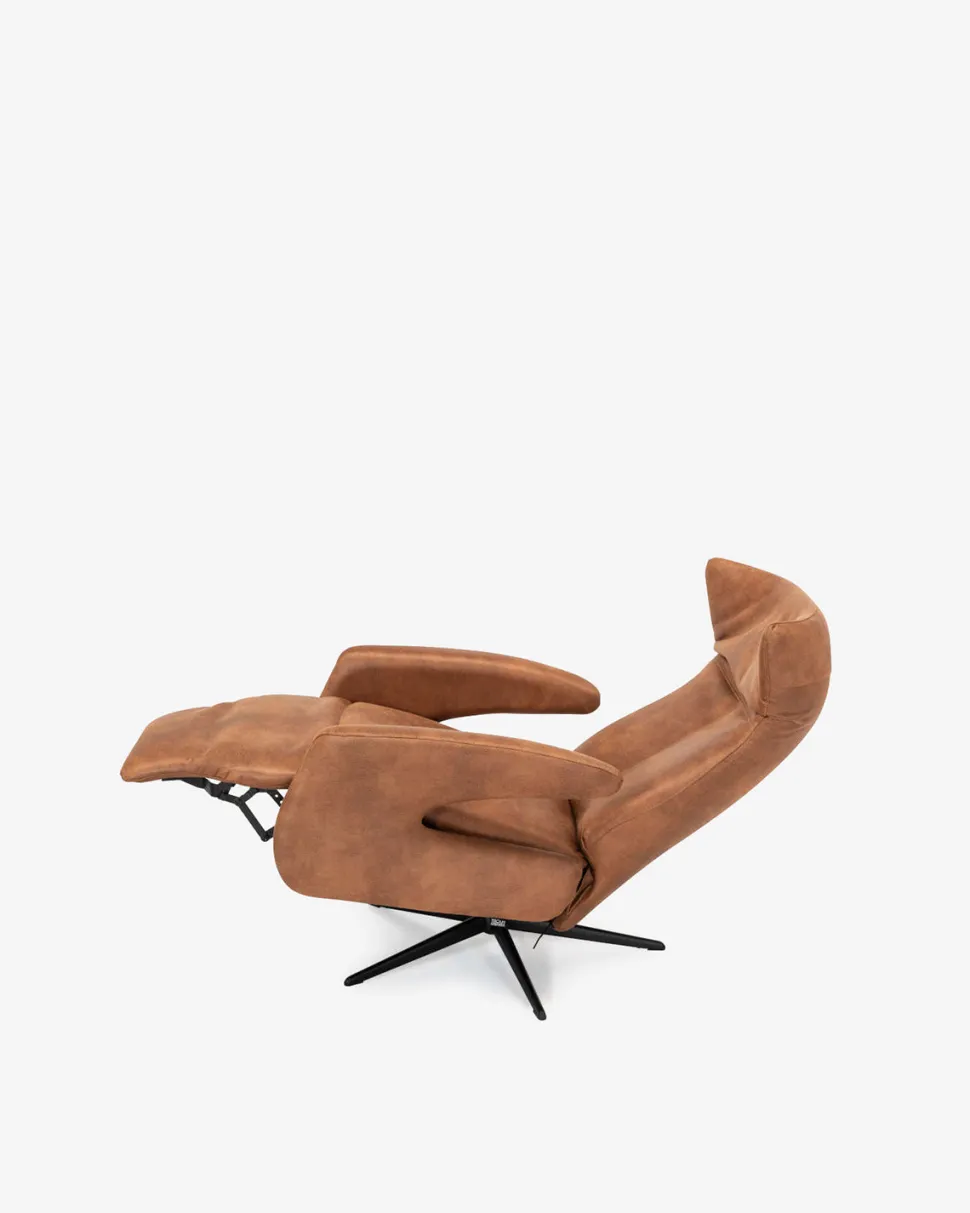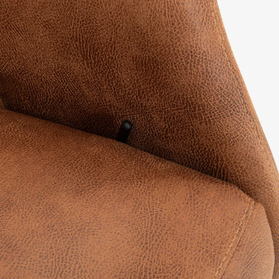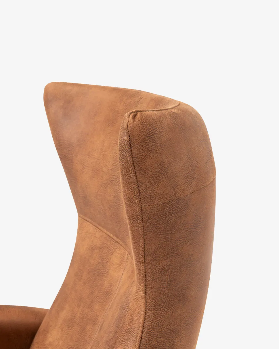Masset er en moderne og funktionel lænestol designet til afslapning med fokus på komfort og brugervenlighed. Stolen er betrukket i cognacfarvet Kentucky-stof, som tilfører varme og karakter til indretningen. Kentucky-stoffet er præget med læderstruktur, hvilket giver en blød og levende overflade med masser af dybde og spil.