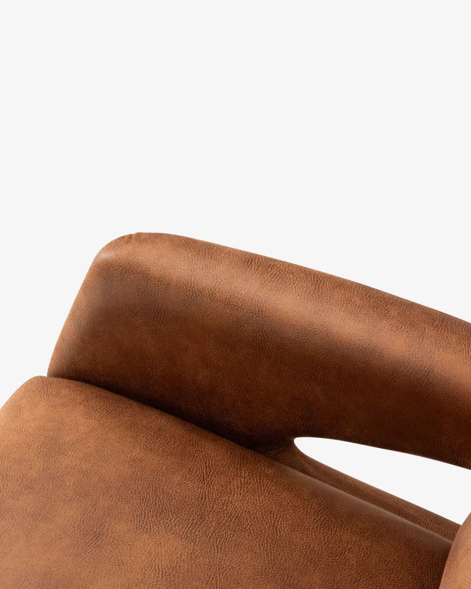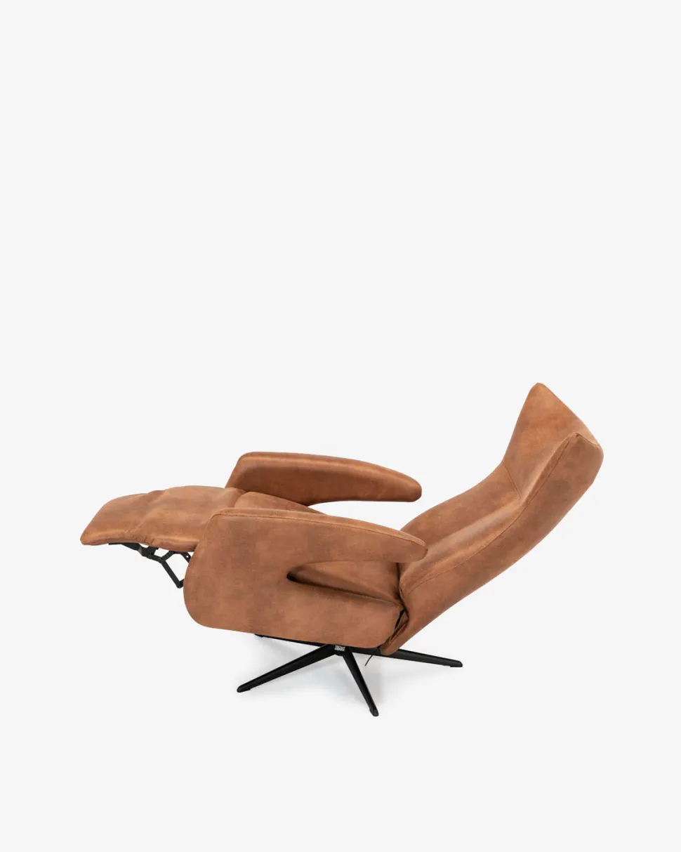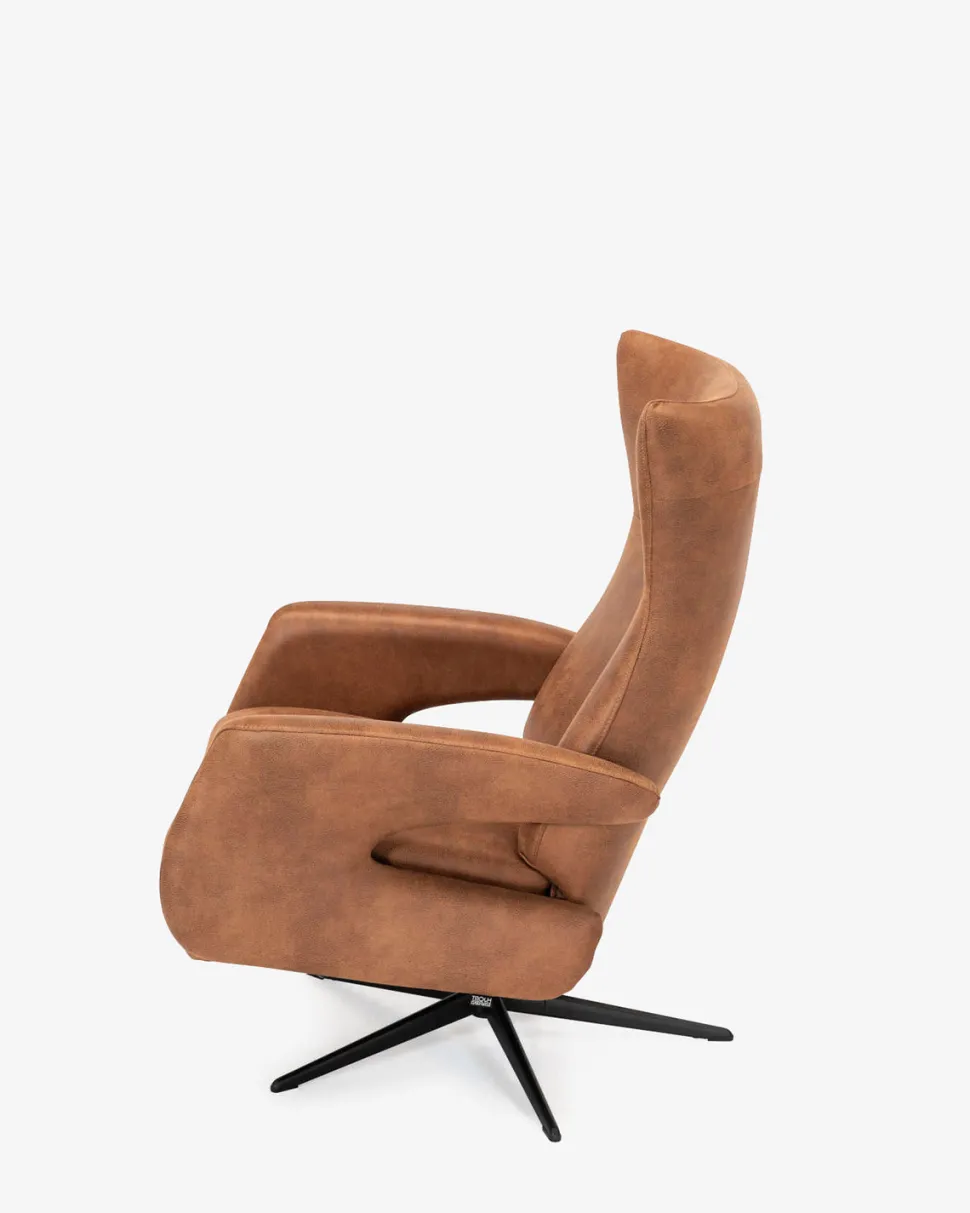 Masset er en moderne og funktionel lænestol designet til afslapning med fokus på komfort og brugervenlighed. Stolen er betrukket i cognacfarvet Kentucky-stof, som tilfører varme og karakter til indretningen. Kentucky-stoffet er præget med læderstruktur, hvilket giver en blød og levende overflade med masser af dybde og spil.