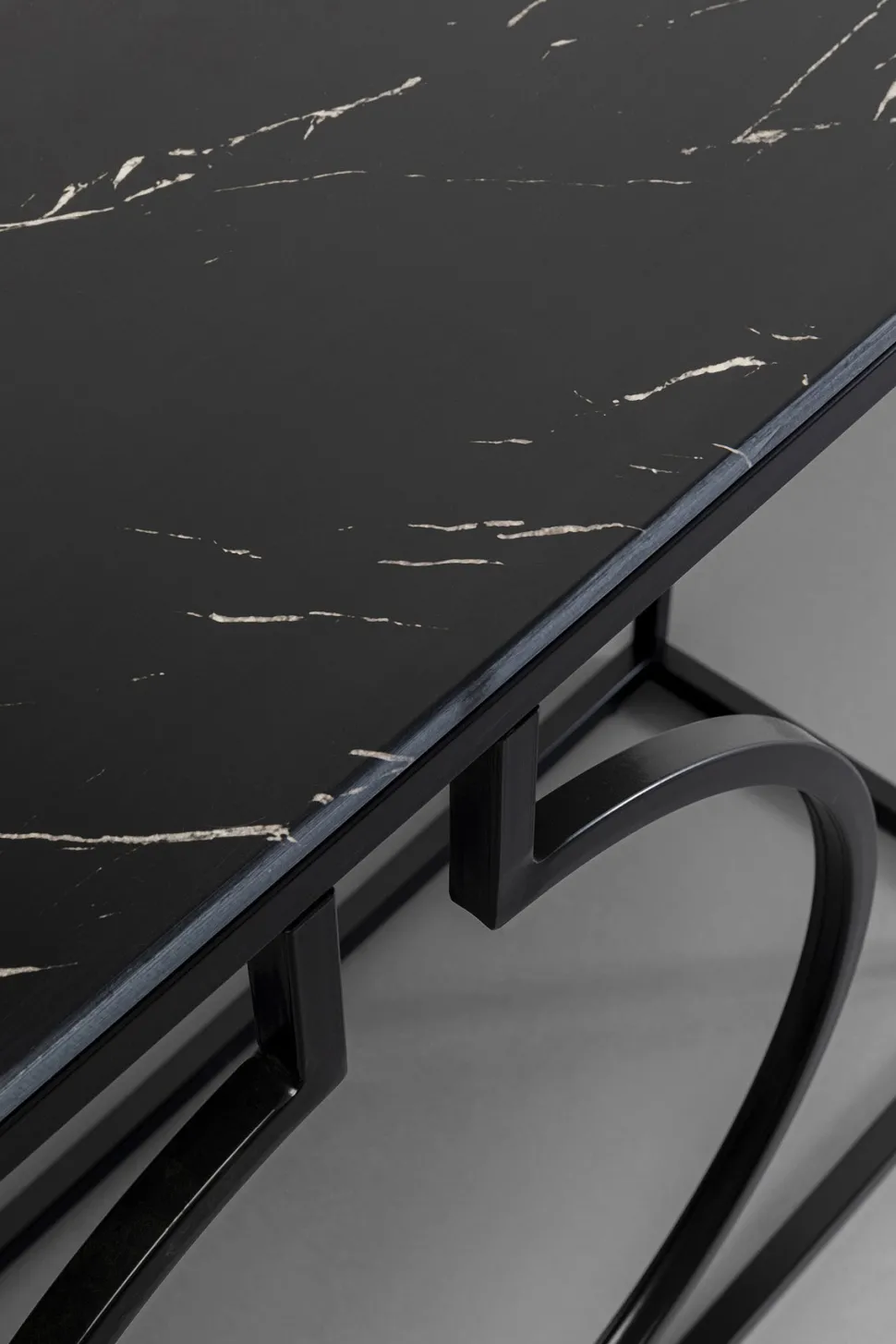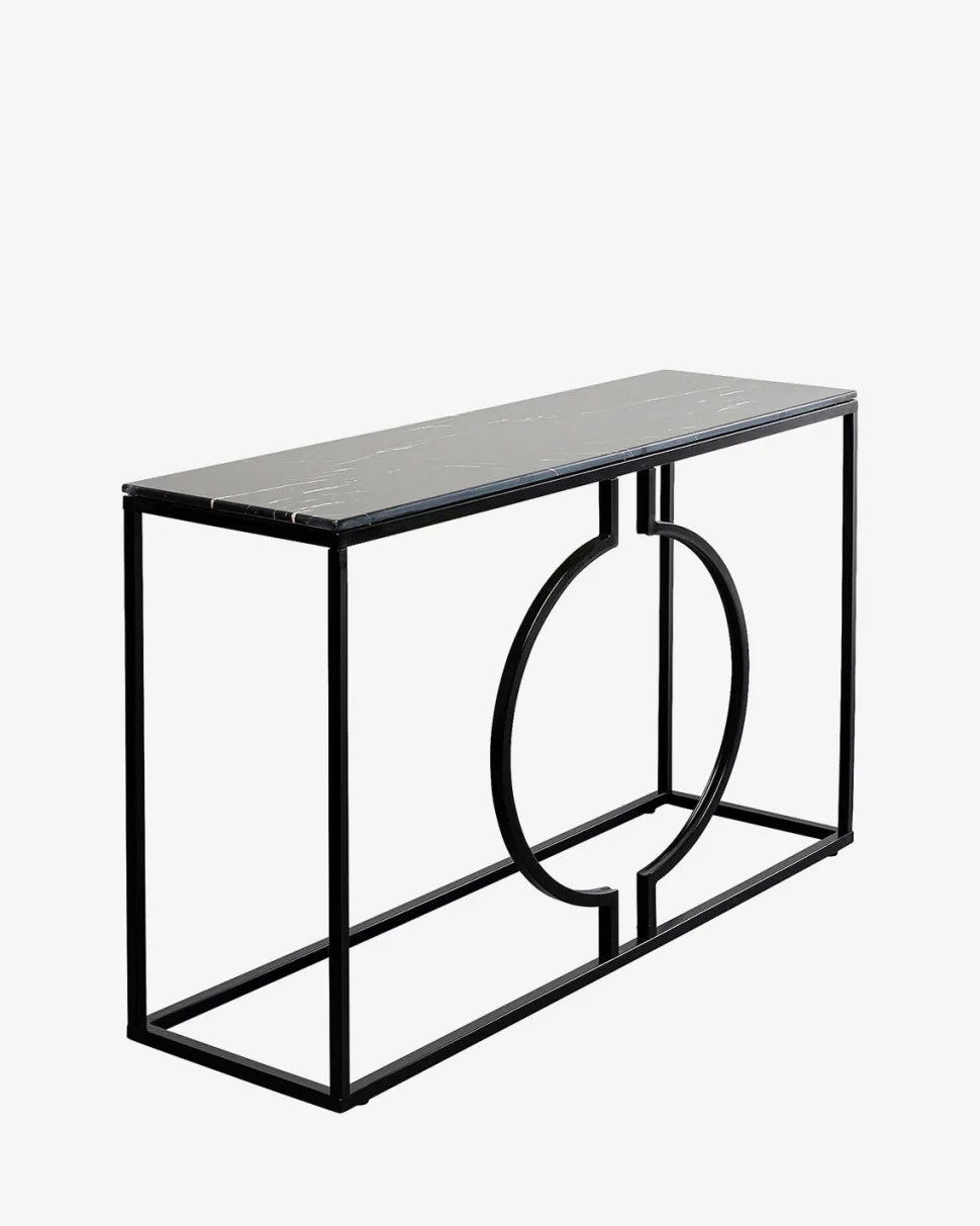 Det smukke Miami loft konsolbord er udført i en solid ramme af lakeret stål og sort marmorplade.