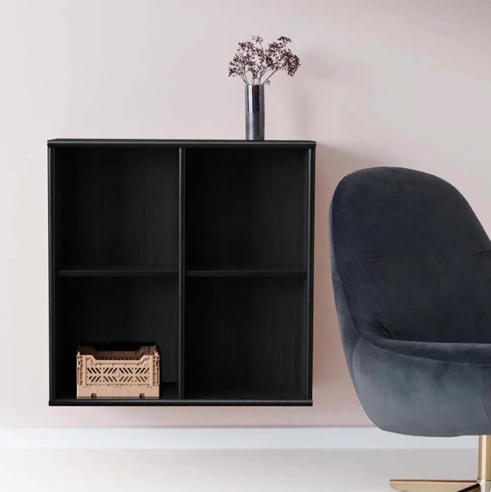 Denne bogkasse er produceret i sort lak. Reolens minimalistiske stil gør den nem at indrette med.