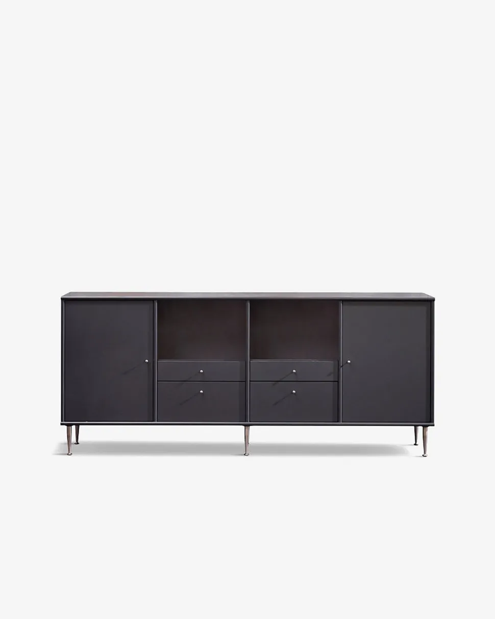 Klassisk Mistral skænk i antracitgrå med børstede stålben. Skænken kan sammensættes og tilpasses dine behov.