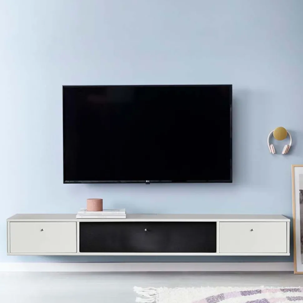 Dette tv-bord er produceret i lys grå lak. Det lette enkle design, med stofklap i midten og to skuffer, giver et nyt klassisk udtryk til din hi-fi opbevaring. Stofklappen giver mulighed for kontakt til dine hi-fi enheder, uden du skal åbne lågen.