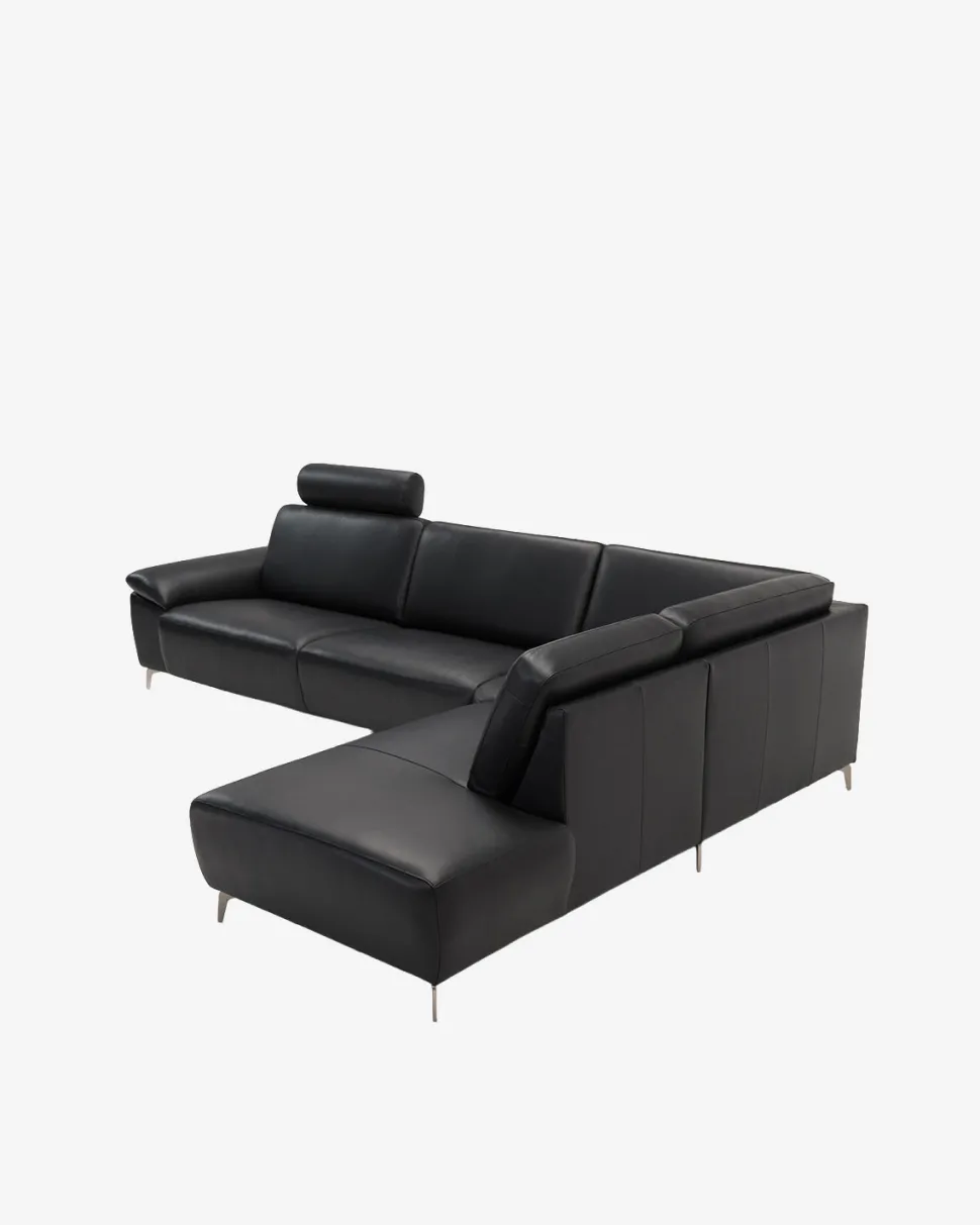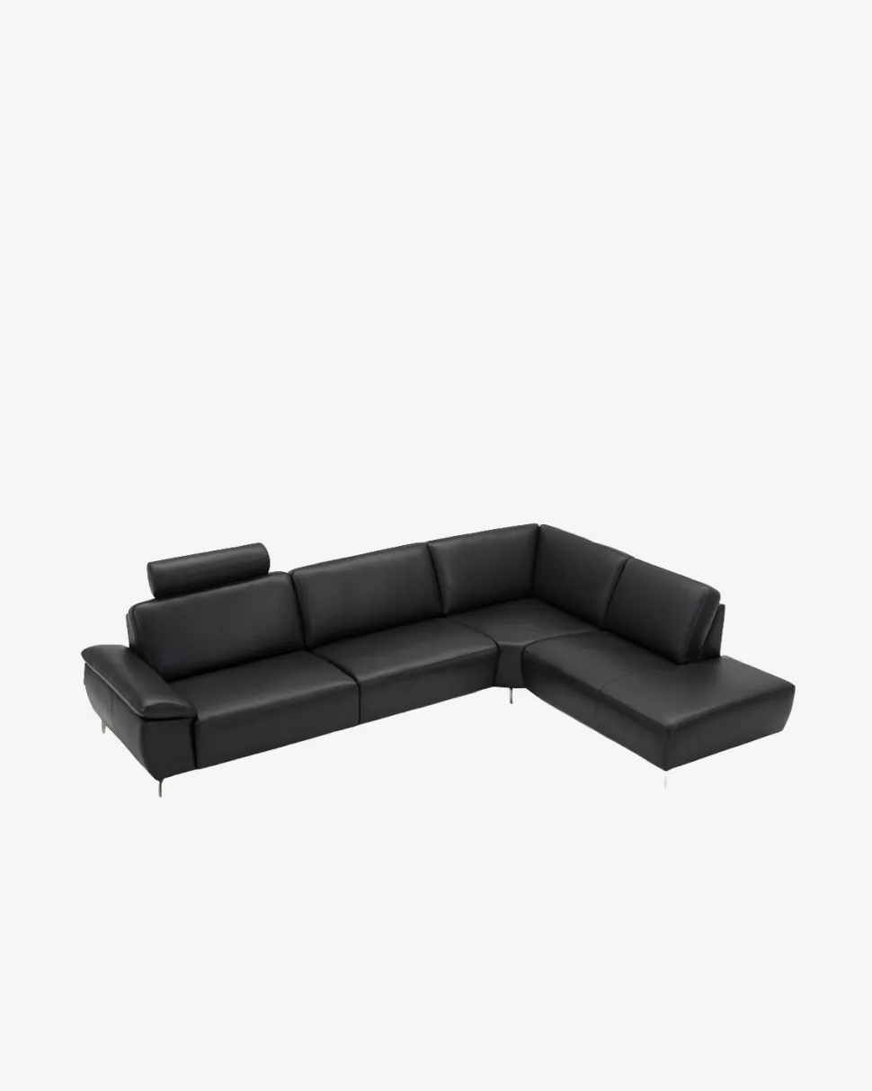 Modu hjørnesofa – fleksibel byggesofa i sort læder. Hjørnesofa med open end og brede armlæn.