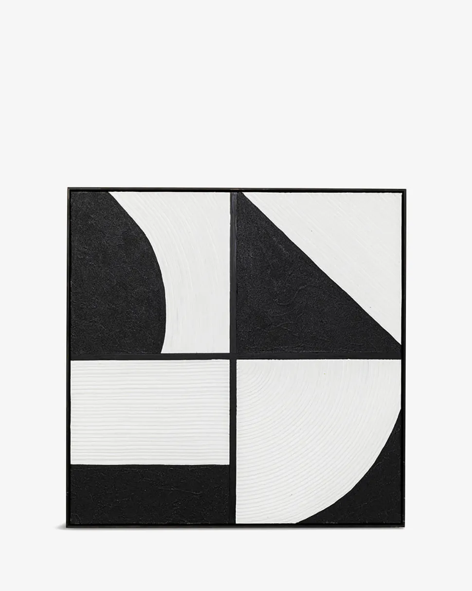 Harmonien i billedet mellem sort og hvid i forskellige former, skaber et flot billede, som vil pynte på enhver væg.