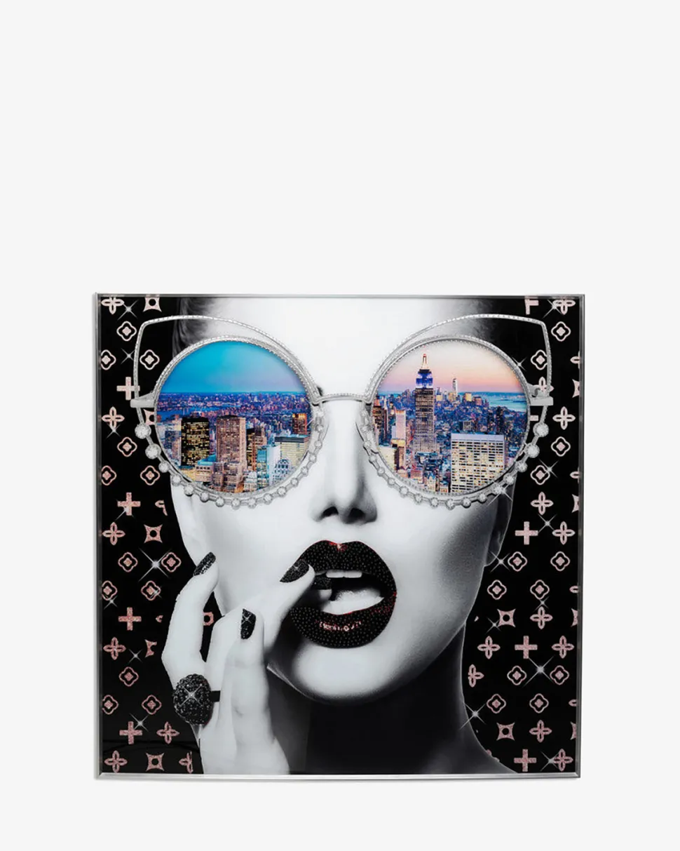 Glasbillede i sort, hvid og masser af farver fra New York Citys farverige univers.