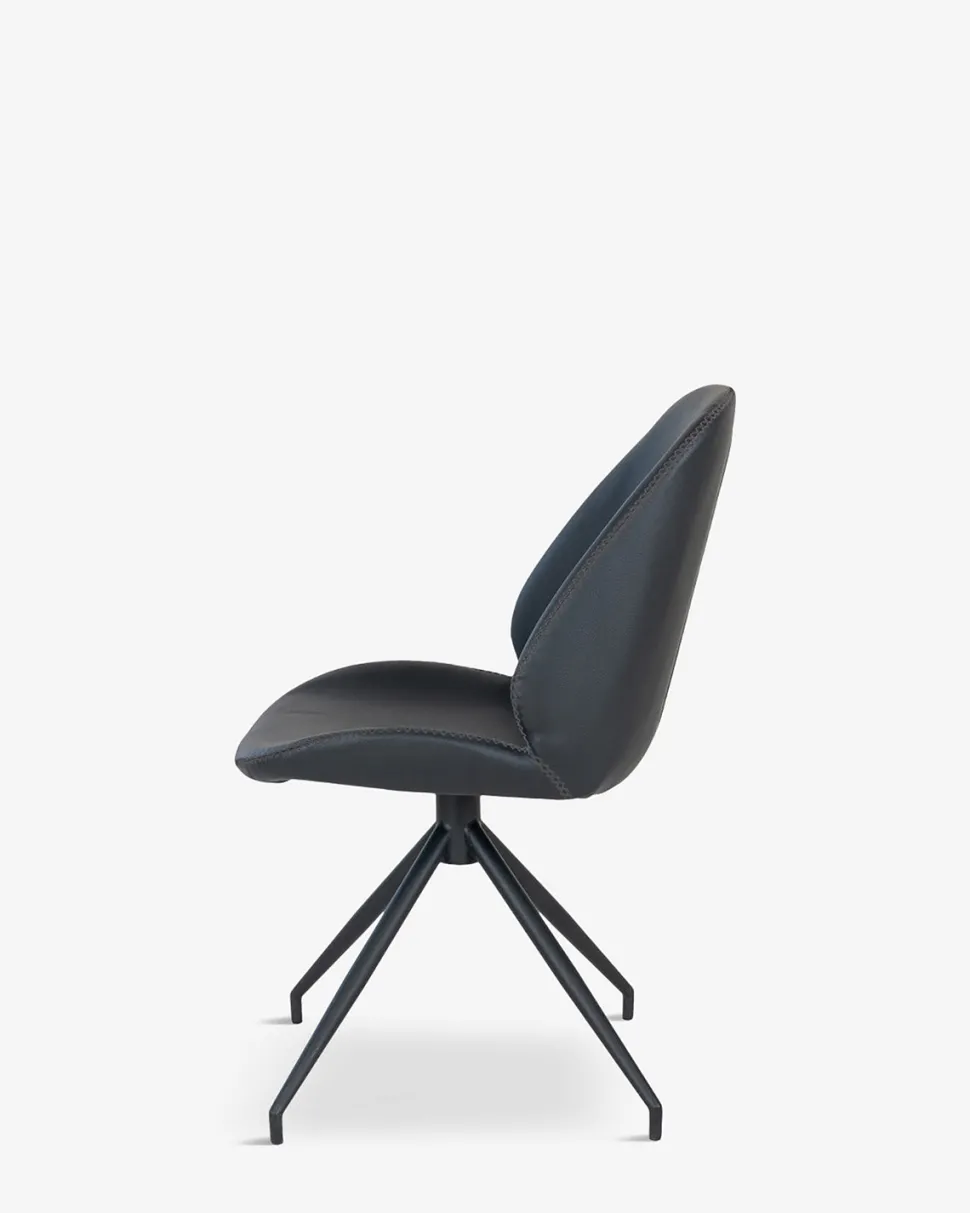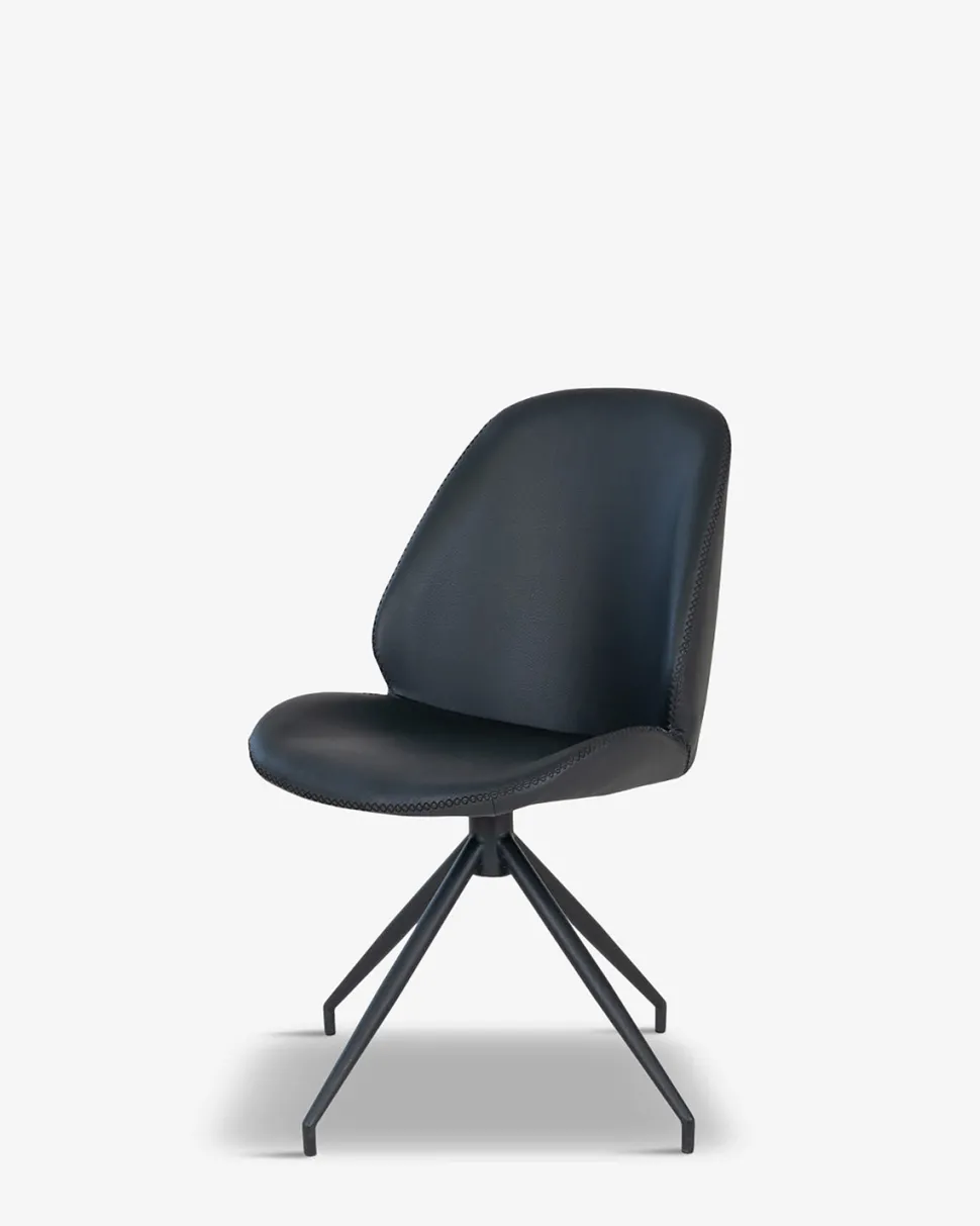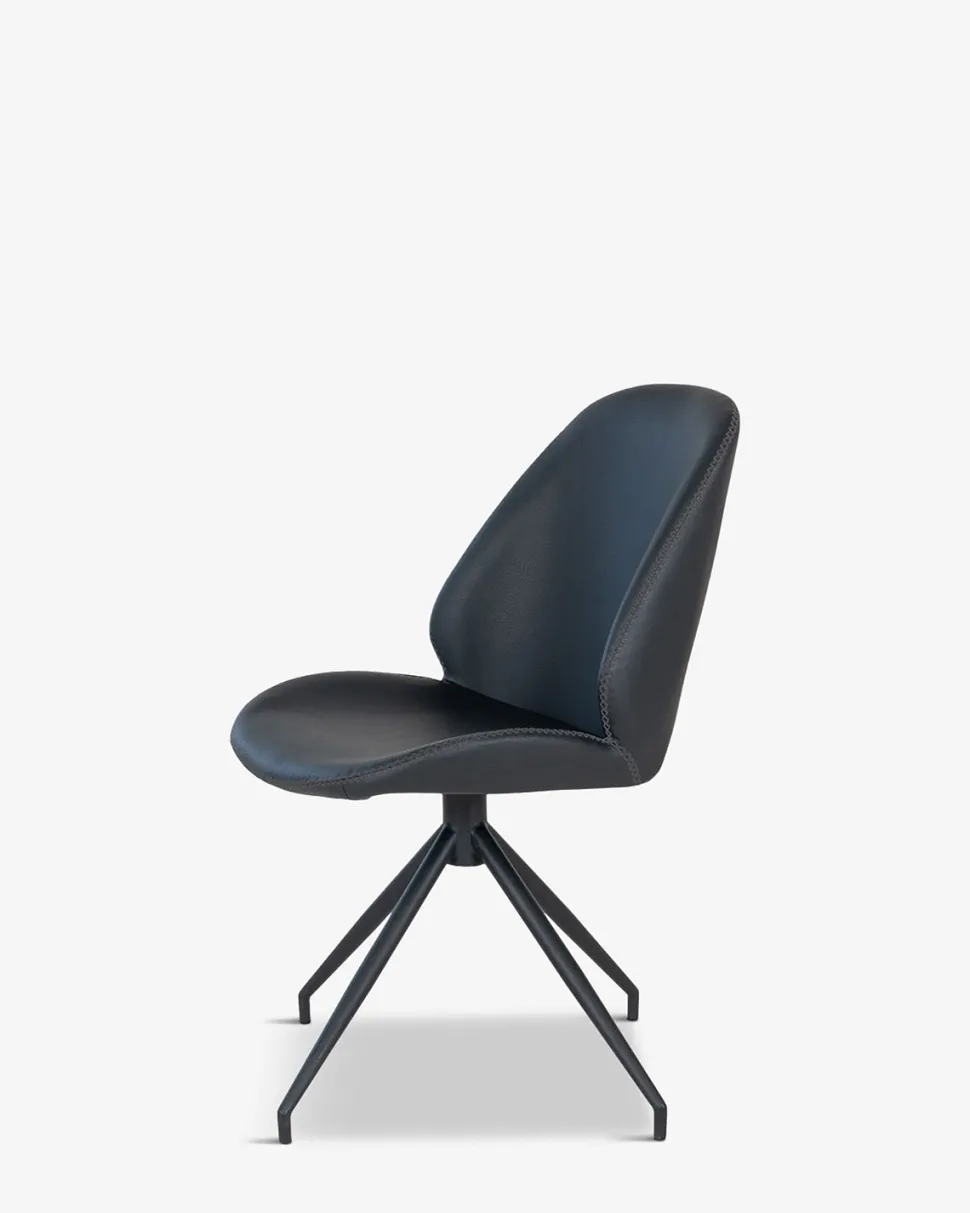 Flot og Enkel Spisebordsstol i sort læderlook. Skaber et stilrent og klassisk udtryk i spisestuen.