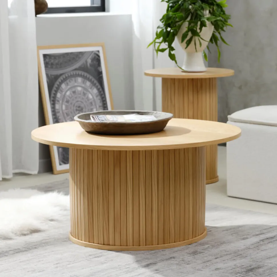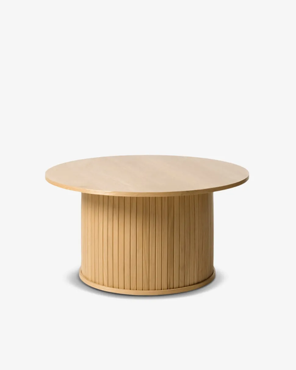 Det runde sofabord fra Nola-serien er udført i et eksklusivt og klassisk look med smukke lamelledetaljer.