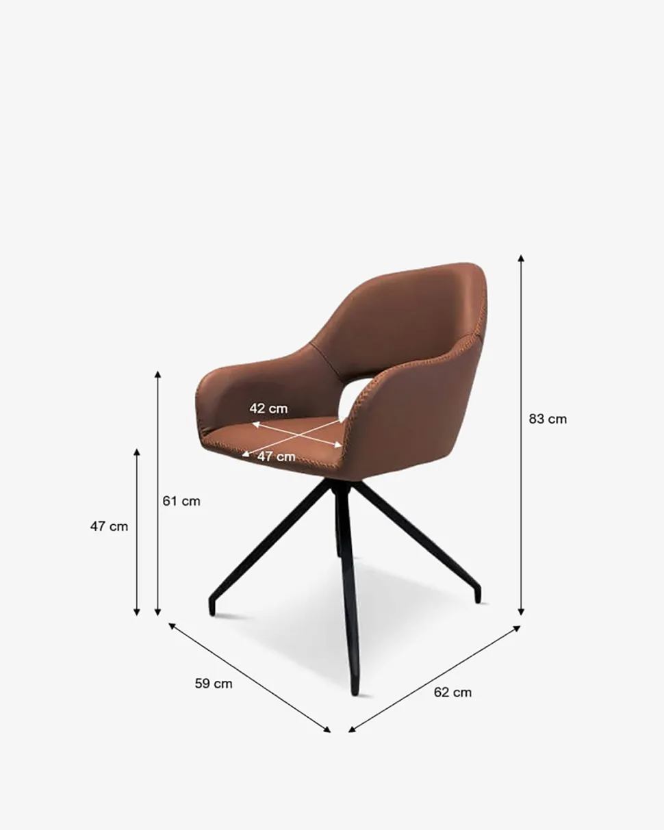 Nola er en smuk spisebordsstol i nordisk design med bløde og slanke linjer. Spisestolen har fine detaljer som krydssyninger og drejestel.