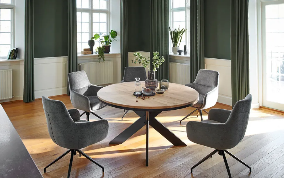 Notting Hill spisebord – rustik massiv eg og moderne stjernesokkel