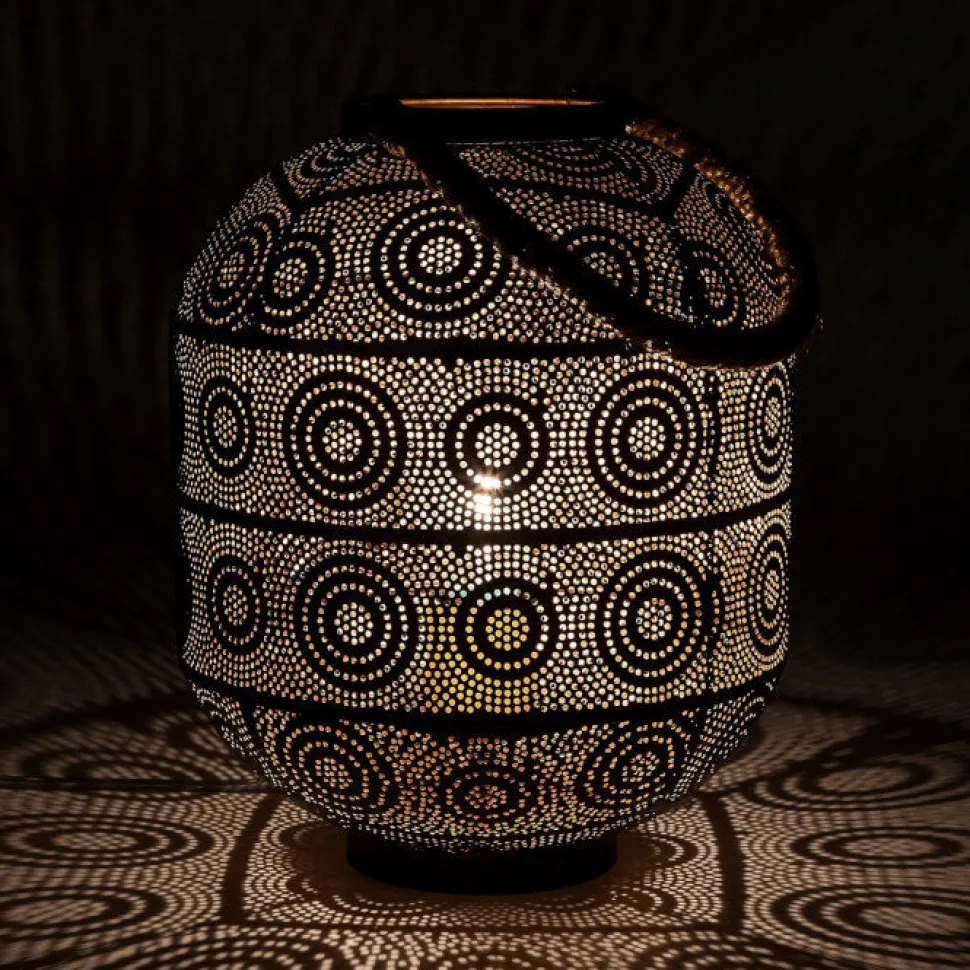 Smuk og meget dekorativ lille gulvlampe der minder om en orientalsk lanterne. Lampen giver et meget hyggeligt lys.