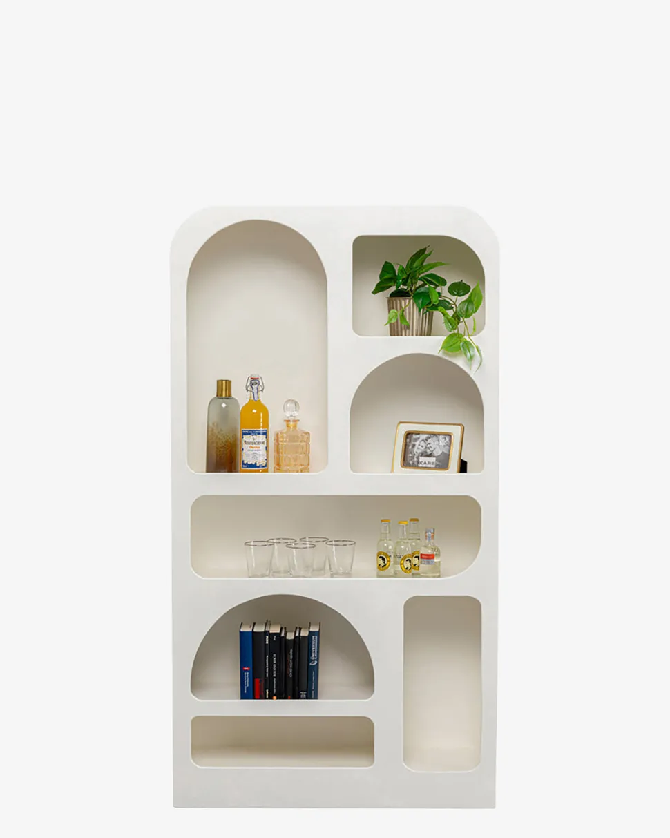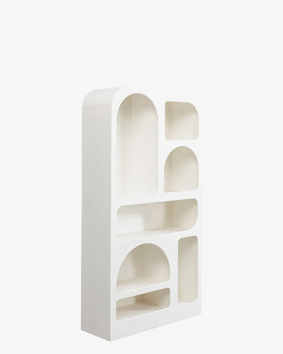 Paco Reolen med sine runde, buede former i hvid er en elegant reol. Perfekt til både opbevaring og som dekorativt element.