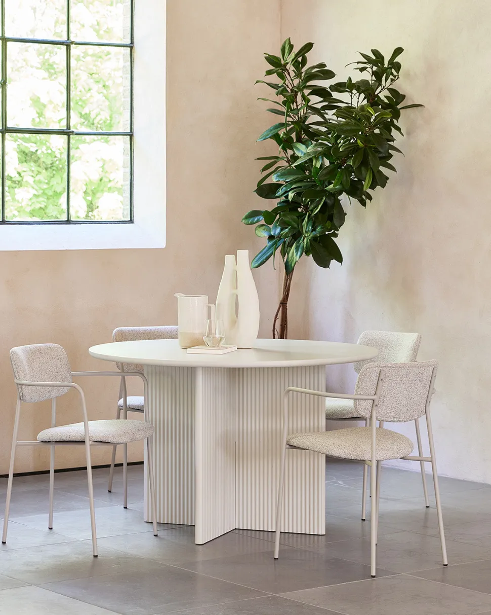 Palma rundt spisebord Ø110 cm i greige med dekorativt stel. Den runde form skaber en hyggelig og indbydende spiseplads.