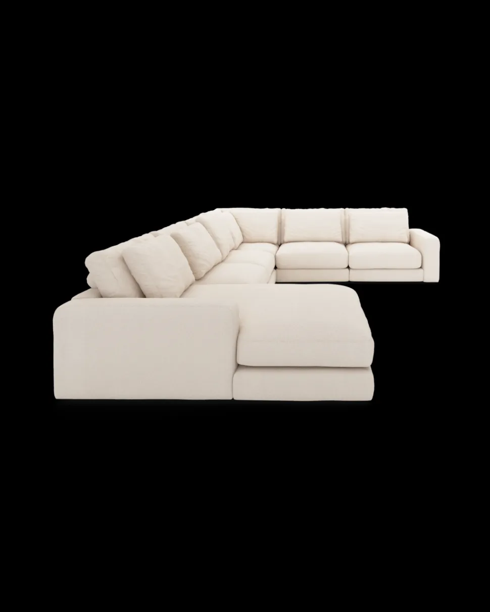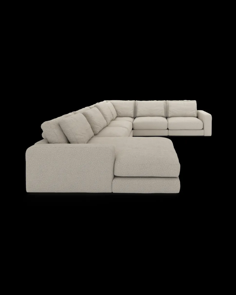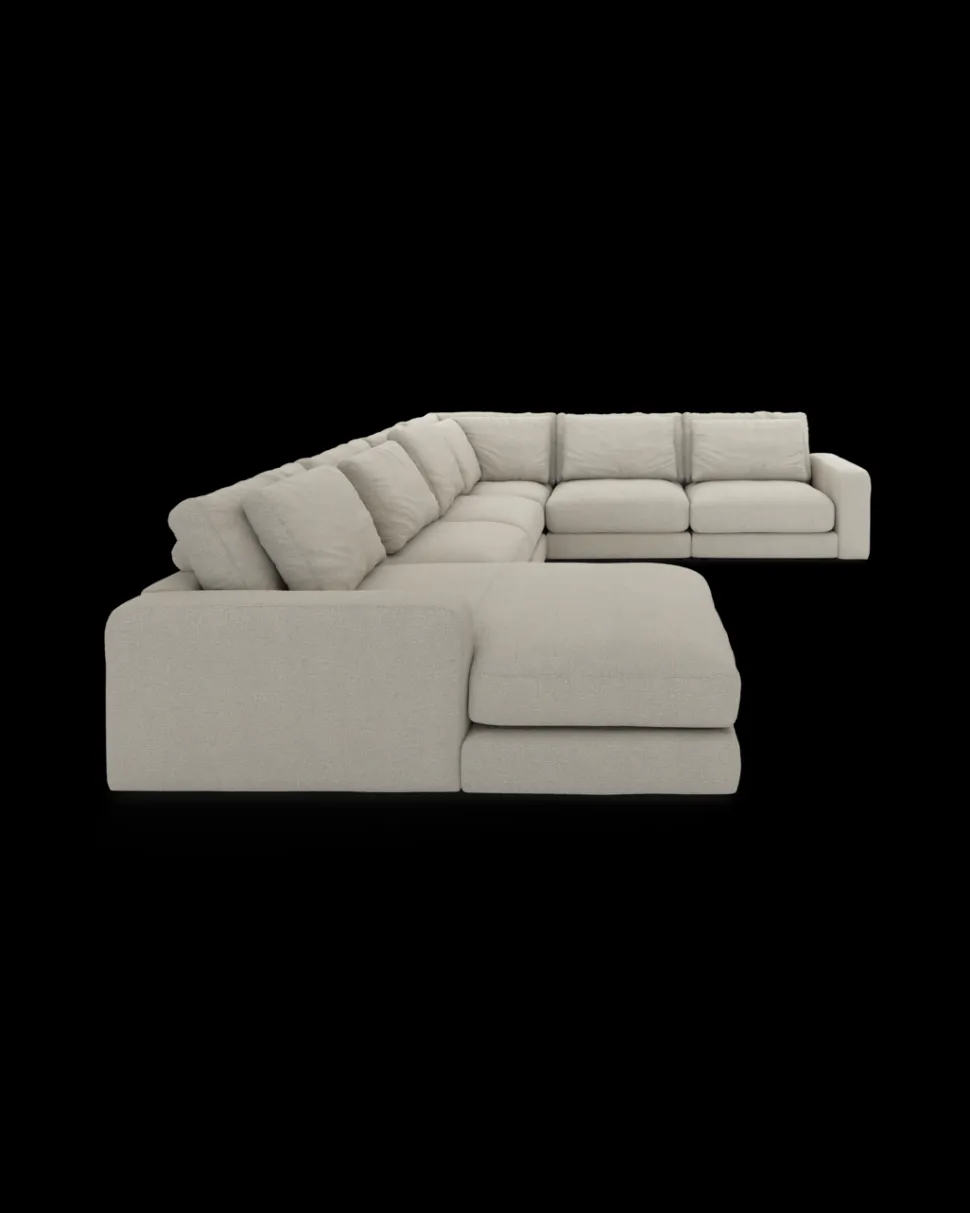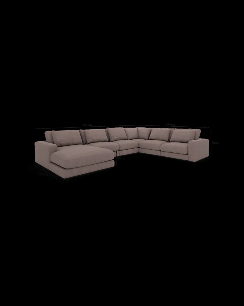 Formsproget er eksklusivt og harmonisk, så sofaen fylder rummet uden at virke tung. Den fungerer især godt i større stuer og åbne alrum, hvor møbler gerne må skabe rumdeling og karakter. Komforten er dyb og afslappet, så man har lyst til at blive siddende (eller liggende) lidt længere.