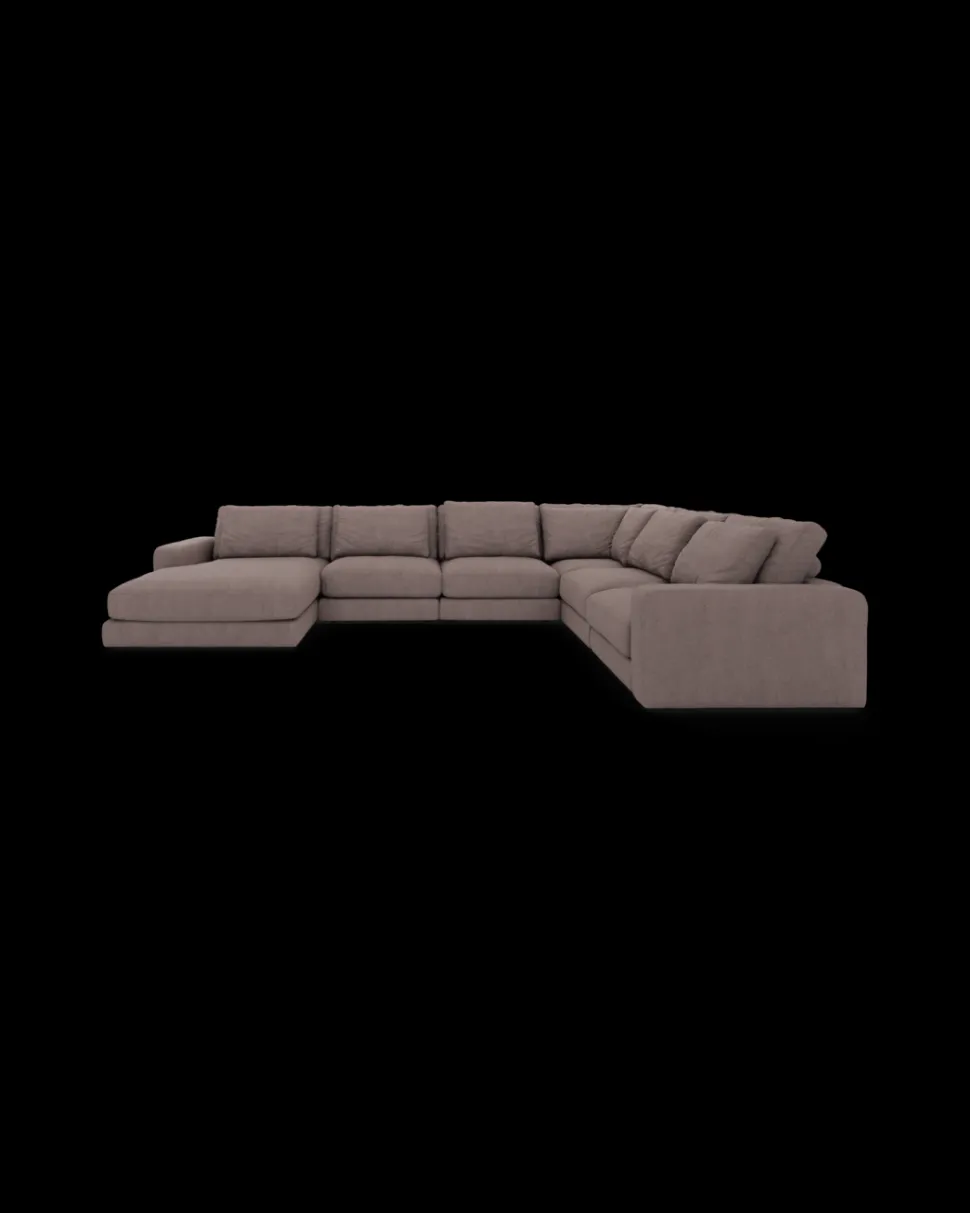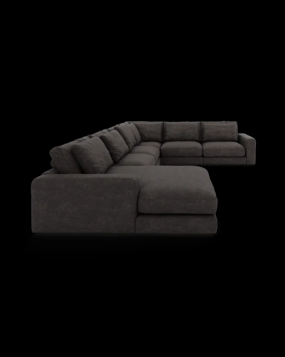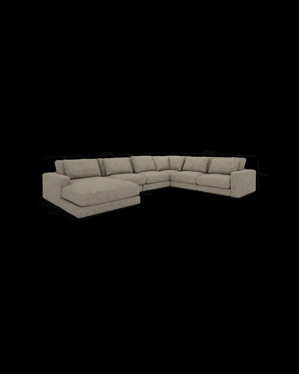Formsproget er eksklusivt og harmonisk, så sofaen fylder rummet uden at virke tung. Den fungerer især godt i større stuer og åbne alrum, hvor møbler gerne må skabe rumdeling og karakter. Komforten er dyb og afslappet, så man har lyst til at blive siddende (eller liggende) lidt længere.