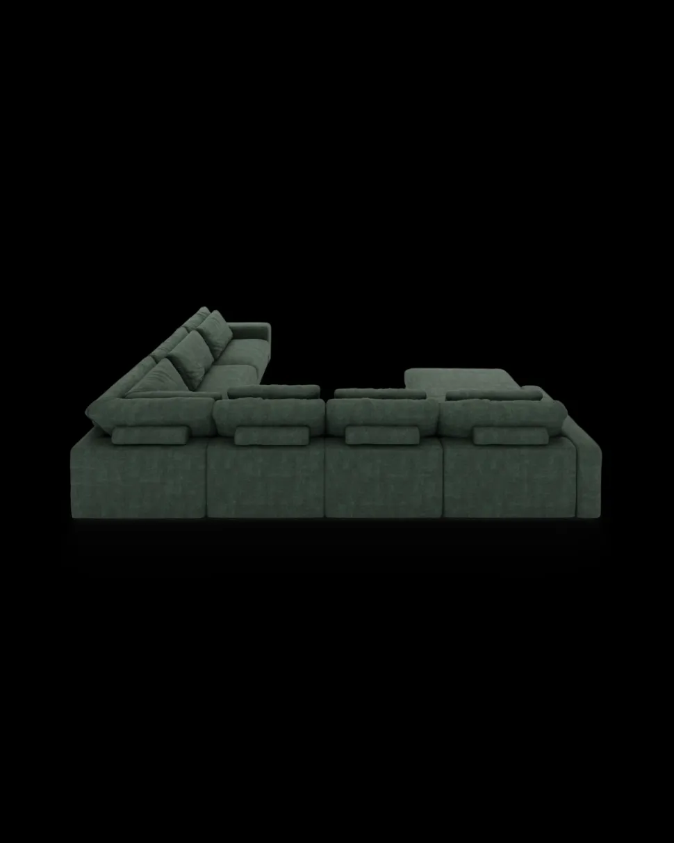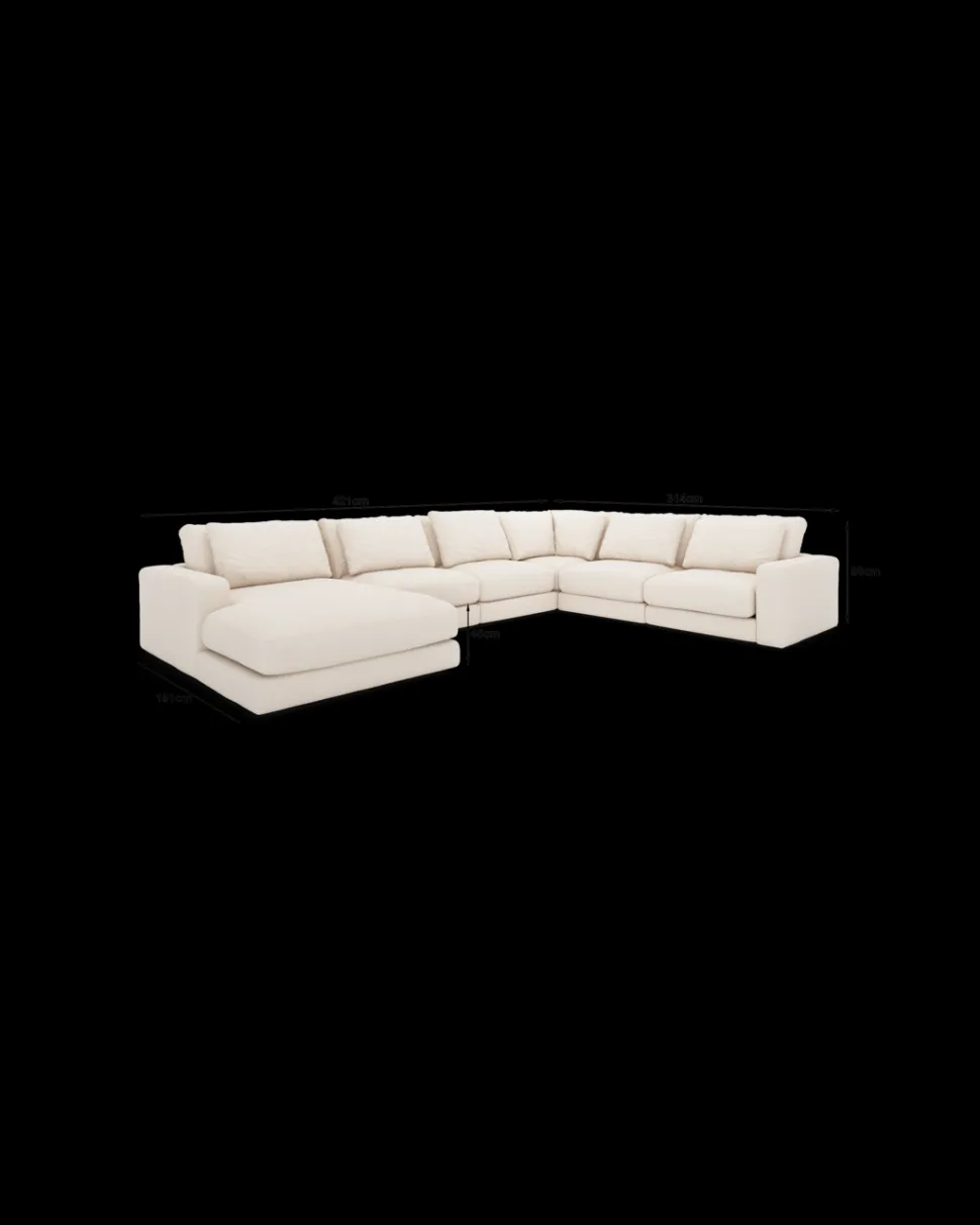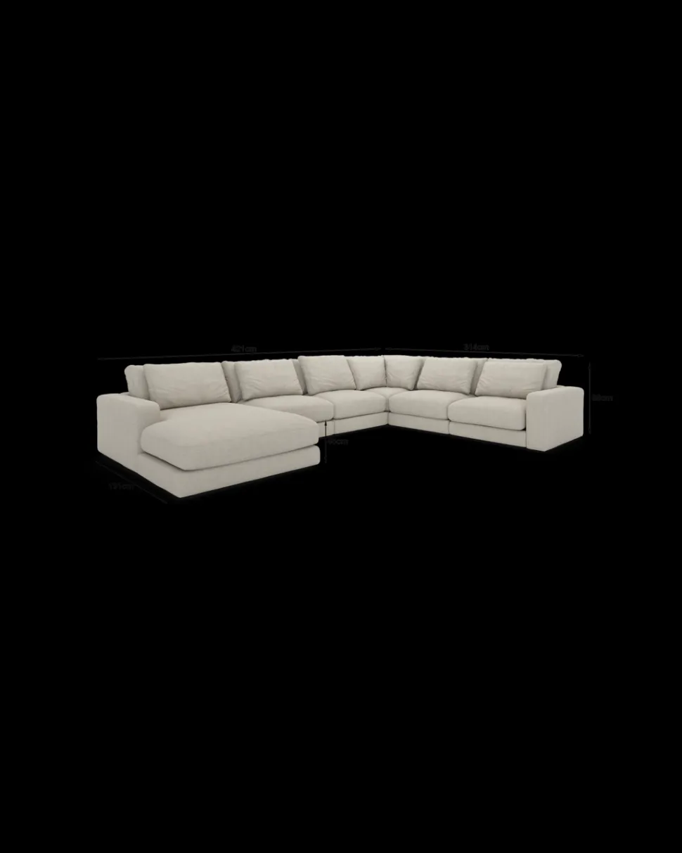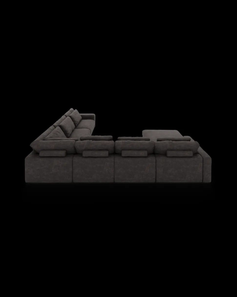 Formsproget er eksklusivt og harmonisk, så sofaen fylder rummet uden at virke tung. Den fungerer især godt i større stuer og åbne alrum, hvor møbler gerne må skabe rumdeling og karakter. Komforten er dyb og afslappet, så man har lyst til at blive siddende (eller liggende) lidt længere.
