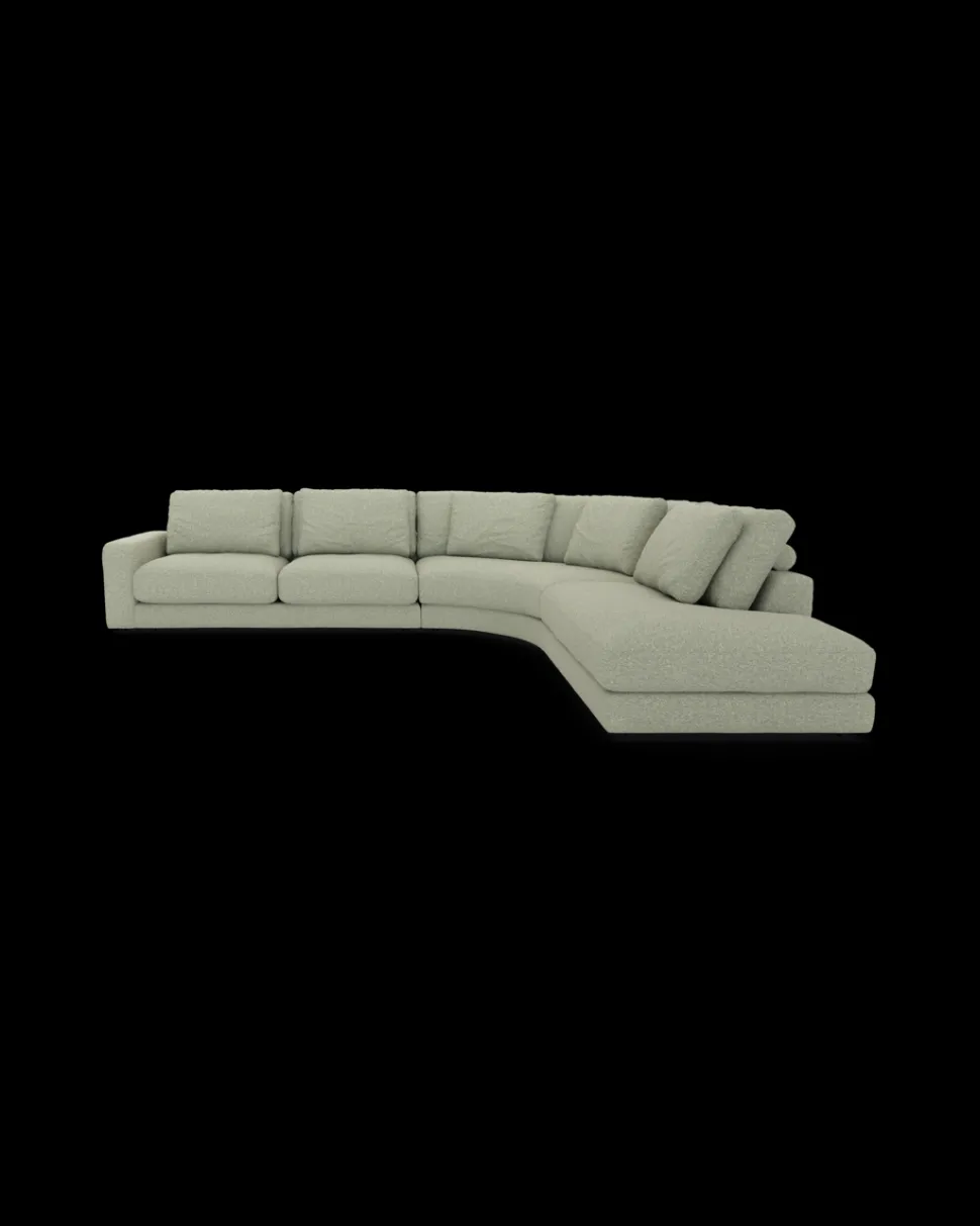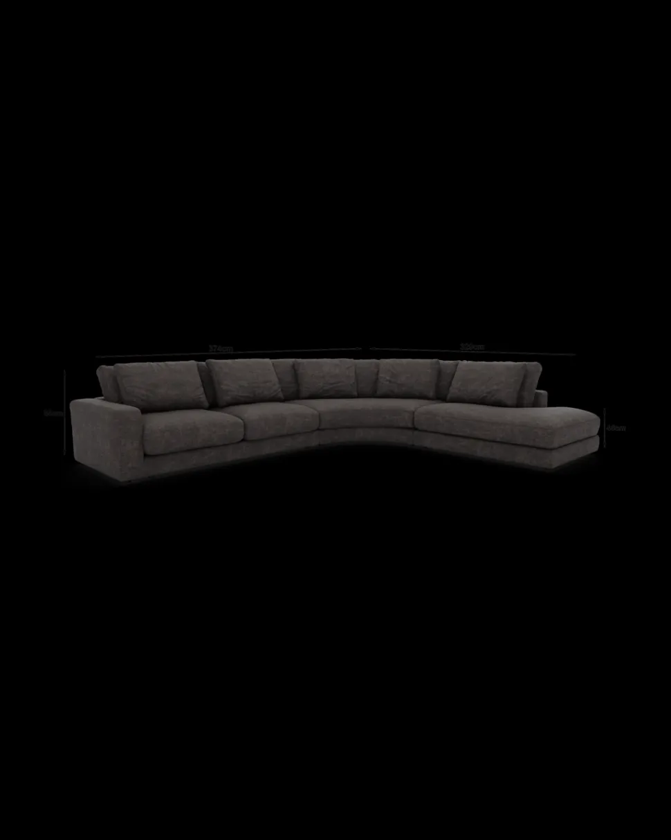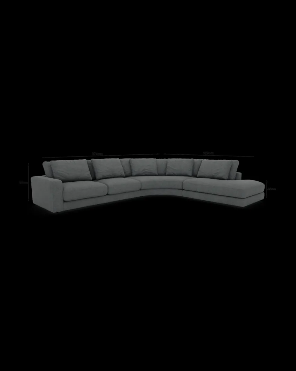 RIO hjørnesofa – rummelig og elegant loungeløsning. Stor opstilling med rundt hjørne og open end. B.384 x D.328 cm.