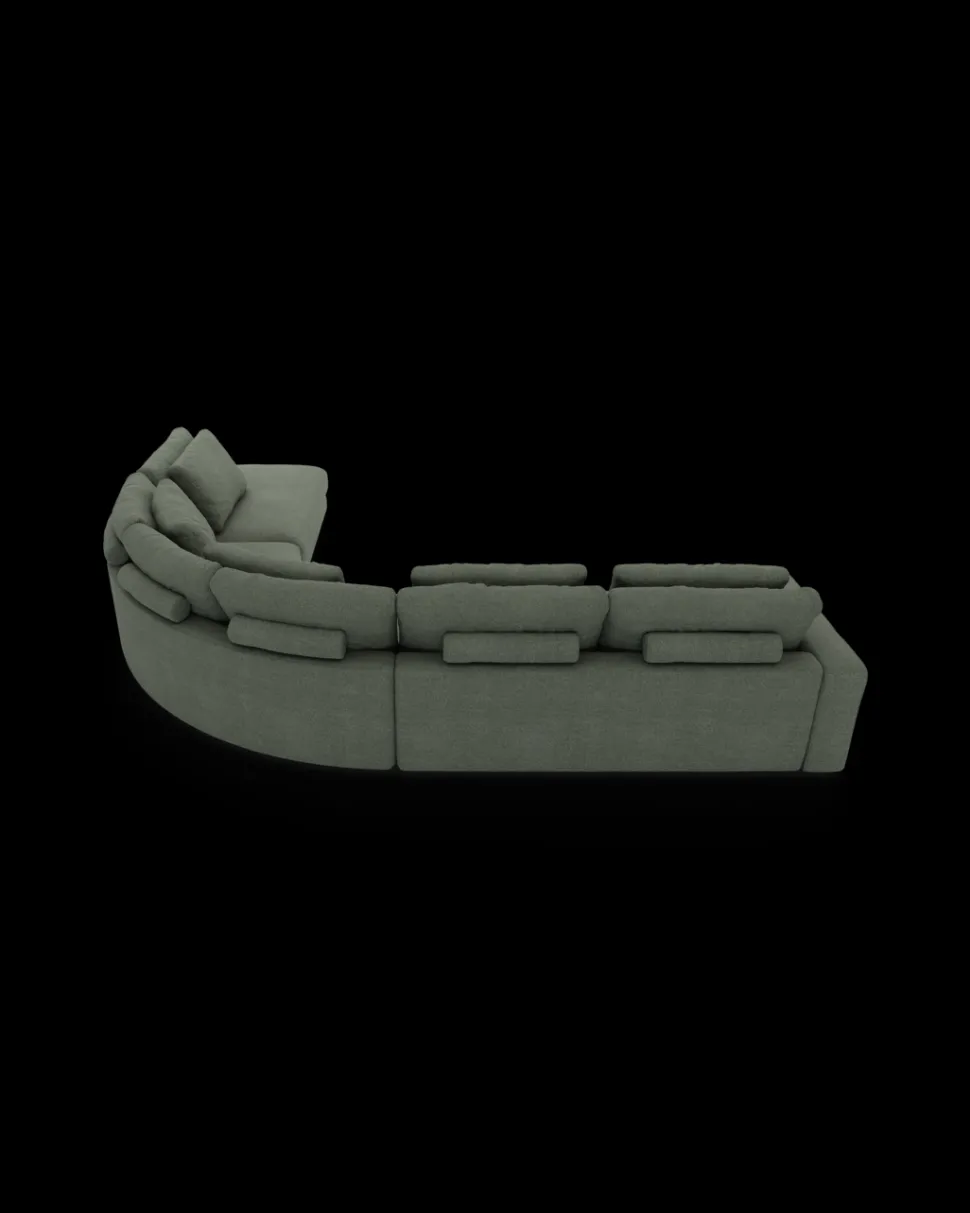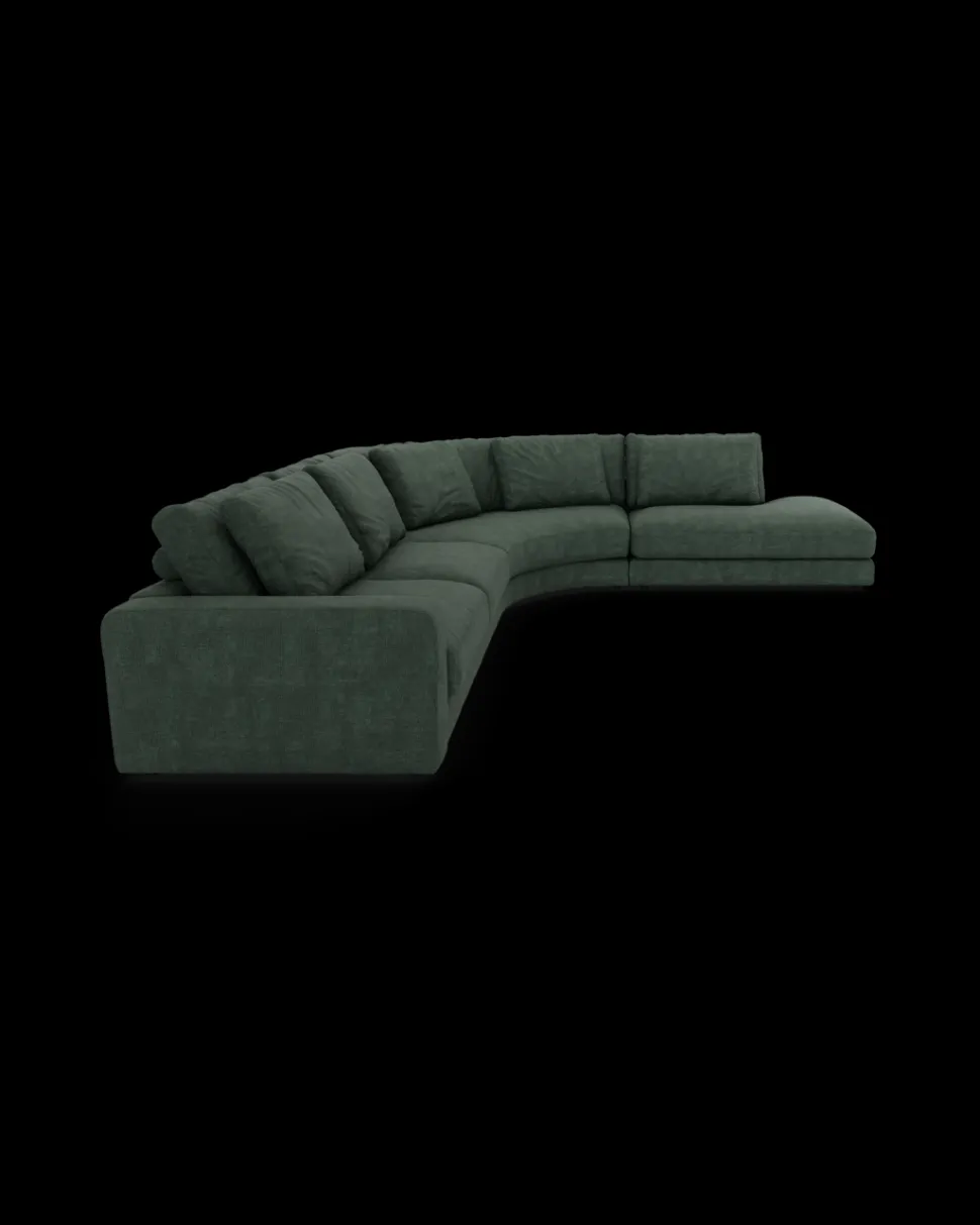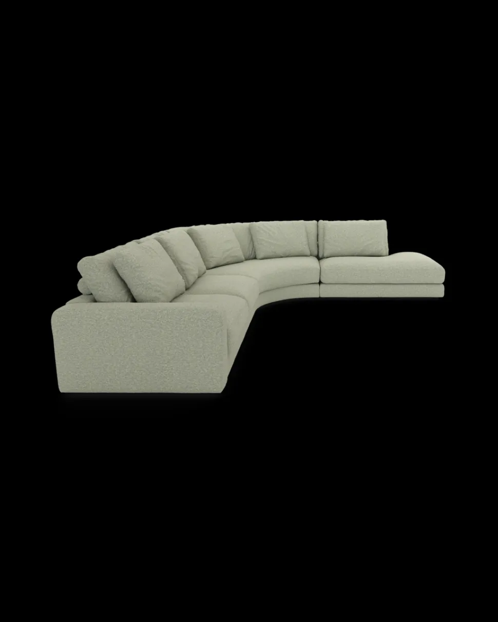 RIO hjørnesofa – rummelig og elegant loungeløsning. Stor opstilling med rundt hjørne og open end. B.384 x D.328 cm.