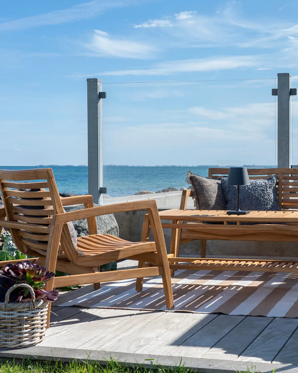 Santander loungesættet kombinerer klassisk håndværk med et stilrent og naturligt design. Sættet er fremstillet i massiv teak, som giver møblerne et varmt og eksklusivt udtryk, der passer perfekt ind i både moderne og mere klassiske uderum.
