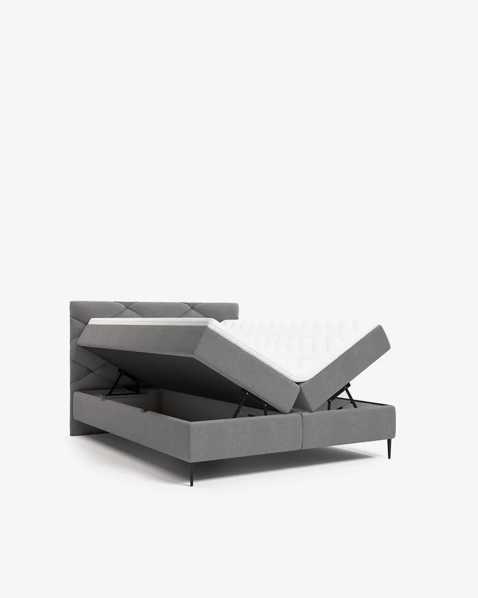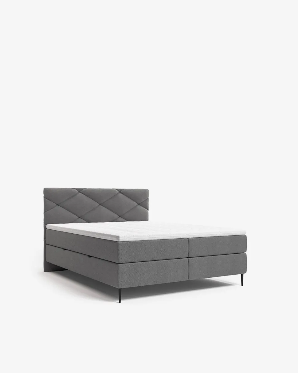Seno kontinentalseng er en garanti for høj komfort og funktionalitet, der vil leve op til forventningerne hos selv de mest krævende brugere. Madrassen med 7-zonet pocket fjedre, giver en stabil støtte til kroppen, og sammen med den 60mm tykke topmadras i HD-skum, sørger det for den korrekte stilling til hele ryggen. Når kroppen får den korrekte støtte, forbedres blodomløbet og musklerne kan slappe af, så kroppen bliver udhvilet og du er klar til en ny dag. Sengens elegante design fremhæves af en hovedgavl med diamantformede syninger, og de 15 cm høje ben tilføjer lethed til hele strukturen. Seno sengen har 2 store opbevaringsrum, der nemt åbnes fra siden, og sengen er derfor ikke kun et valg for komfort, men også for hverdagens bekvemmelighed og funktionalitet. En seng med opbevaring er den perfekte løsning til at skabe ekstra plads og organisering i dit soveværelse.