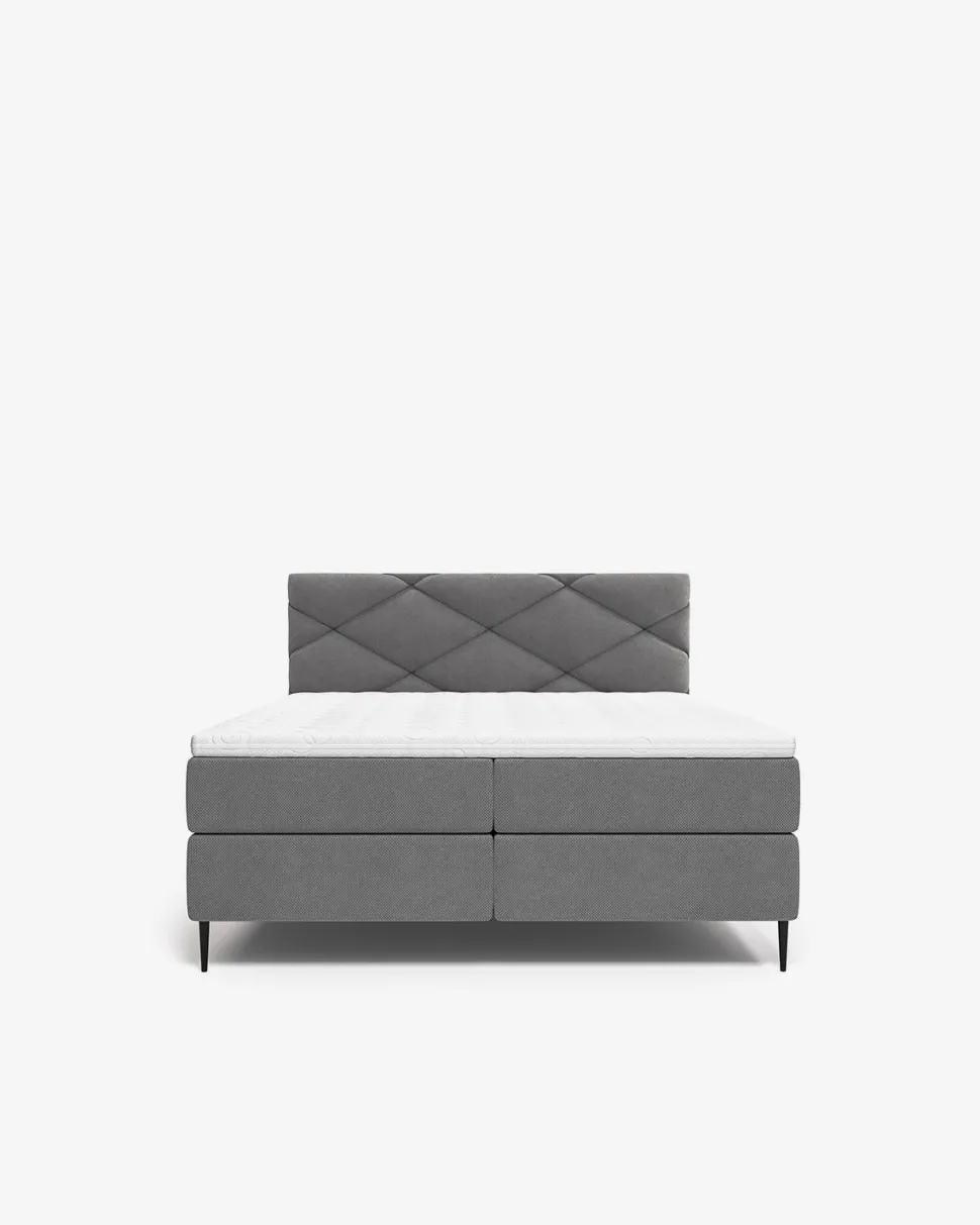 Sengens elegante design fremhæves af en hovedgavl med diamantformede syninger, og de 15 cm høje ben tilføjer lethed til hele strukturen.