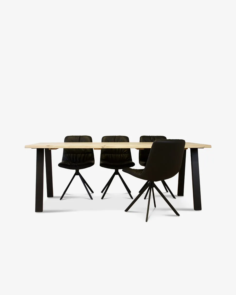 Plankebord med bordplade i smukt rustikt design. Skaber et robust og stilrent udtryk i spisestuen.