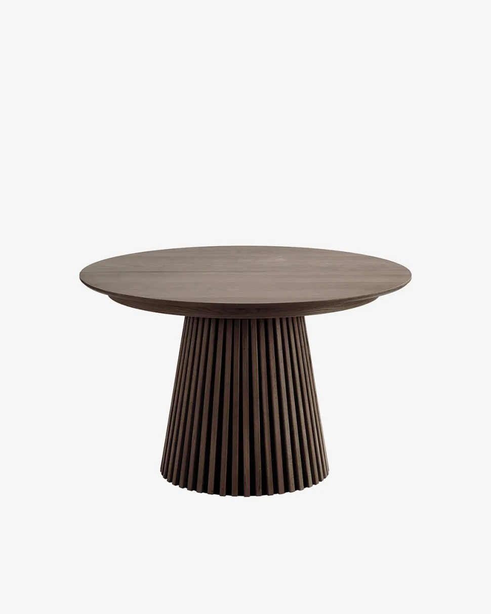Stella Spisebord – rund elegance med skjult fleksibilitet. Stella spisebordet forener bløde former med praktisk udtræk.