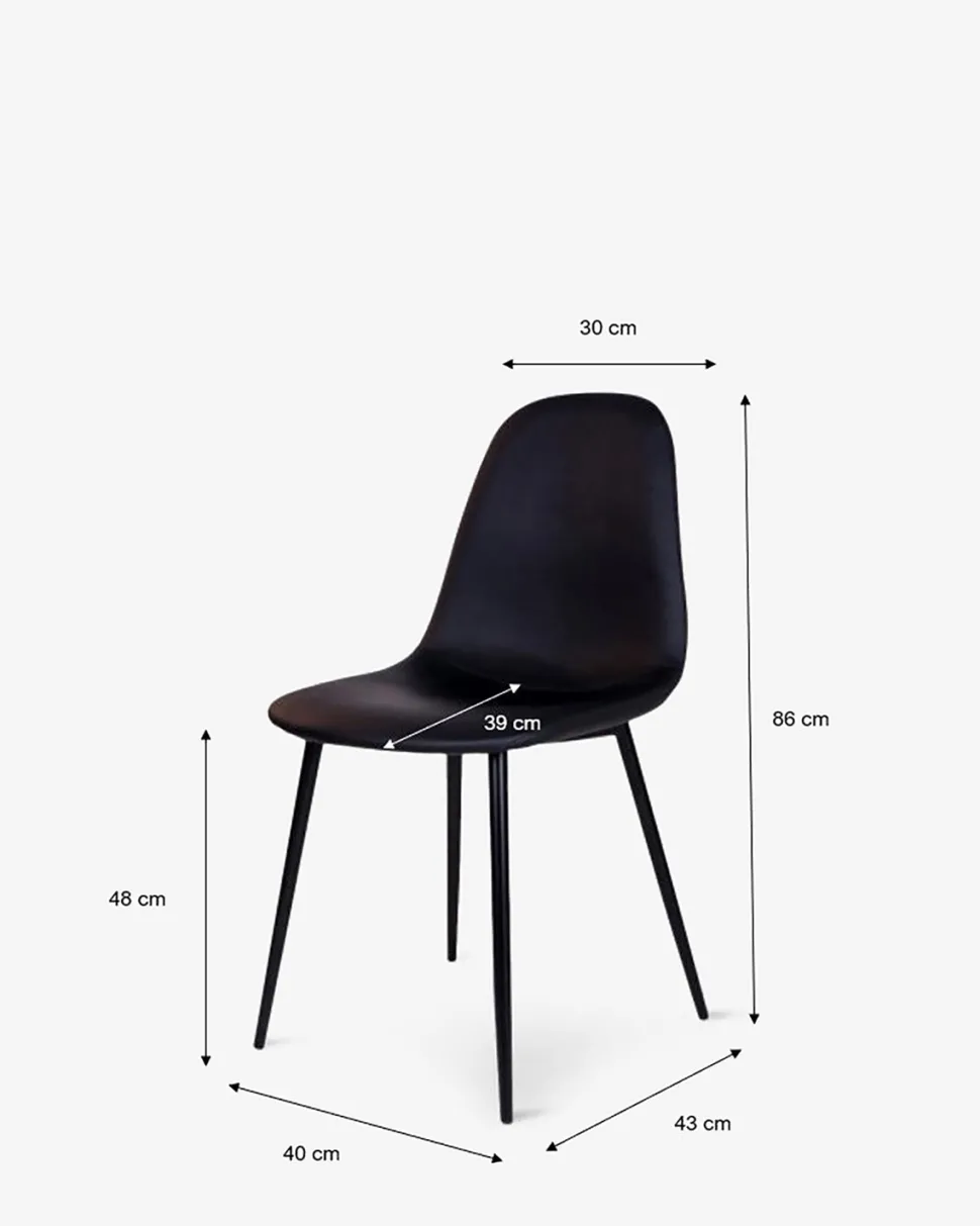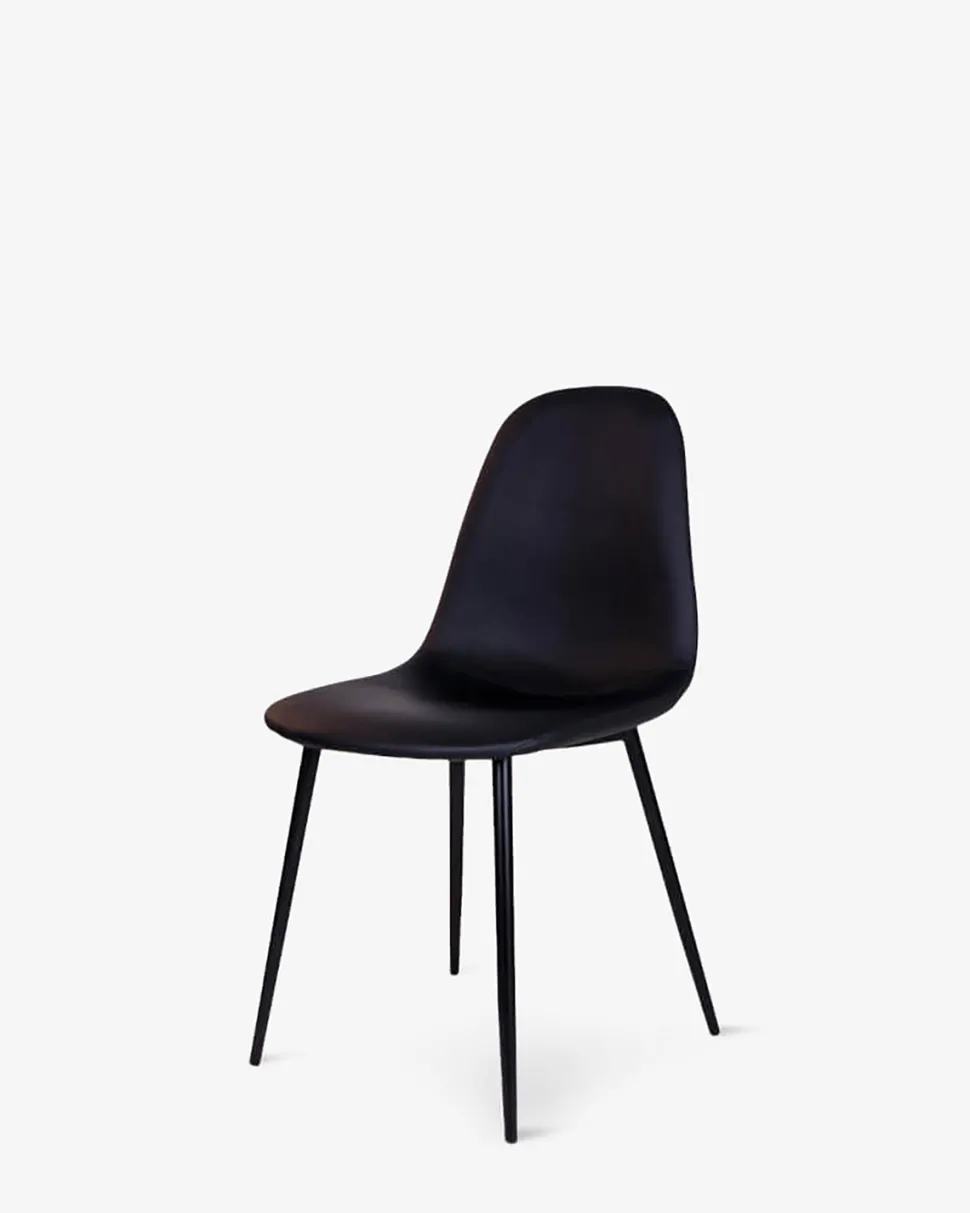 Flot og enkel spisebordsstol i nordisk design, monteret med sort tekstillæder. Stolen har sort stel, og vil passe til langt de fleste spiseborde.