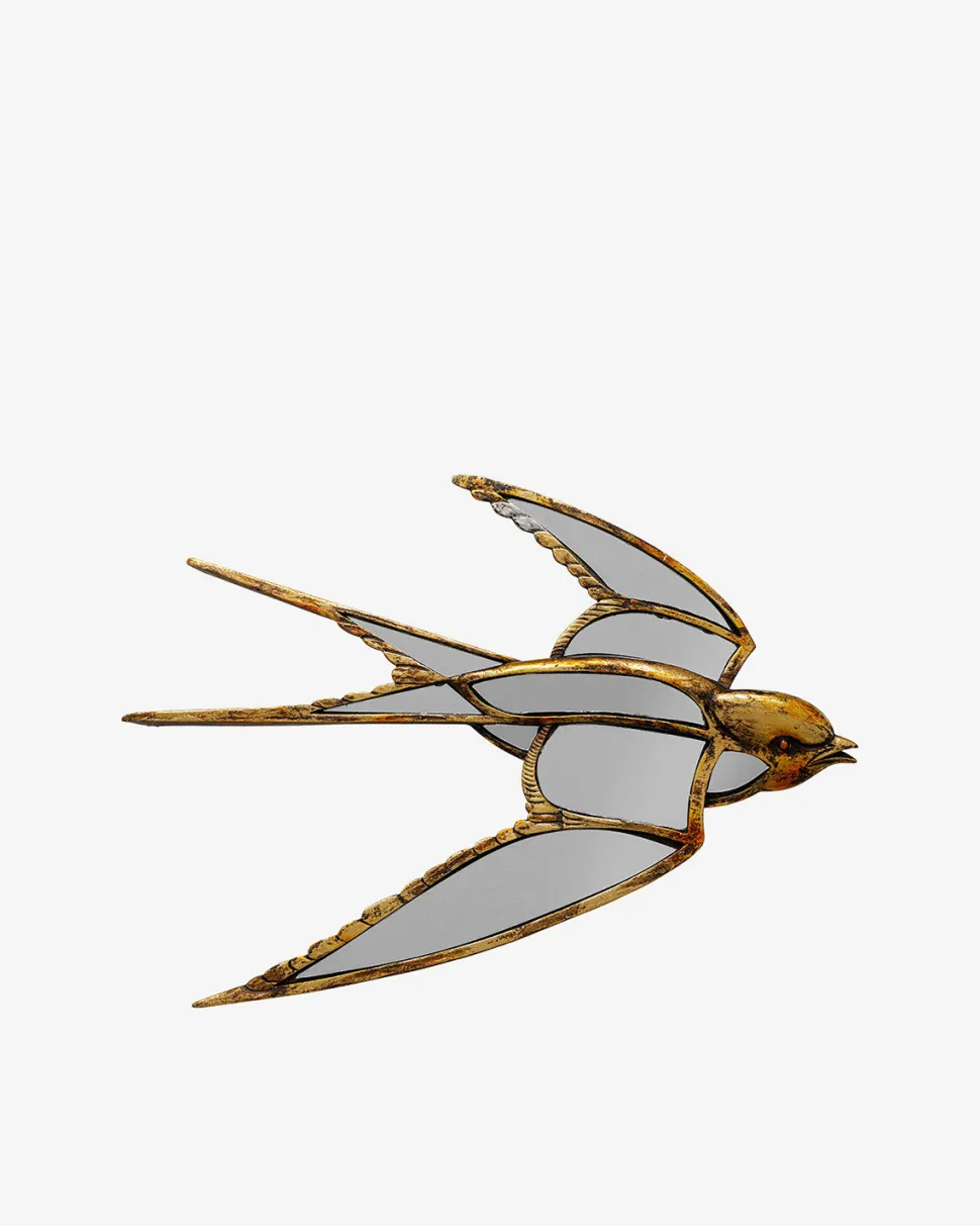 Svale Vægspejl – let elegance med gyldent touch. Svale vægspejlet er formet som en flyvende svale, der tilføjer et let udtryk.