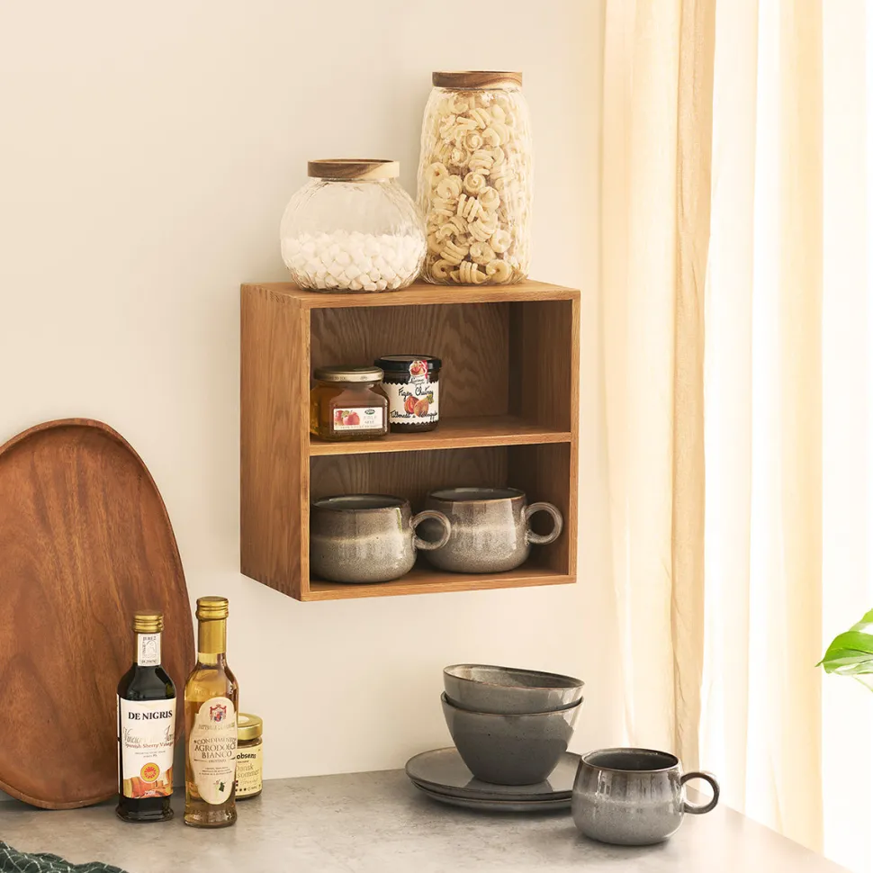 Townsville vægreolen er et åbent modul med én praktisk hylde. Den enkle konstruktion i massiv eg giver et naturligt og tidløst udtryk, som passer ind i både moderne og klassiske hjem.