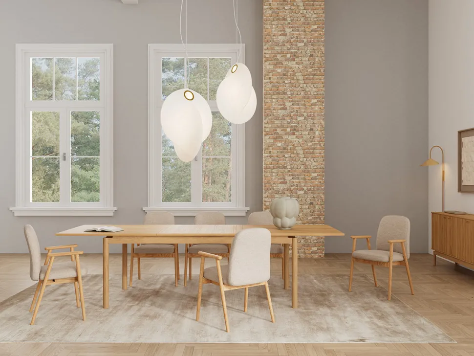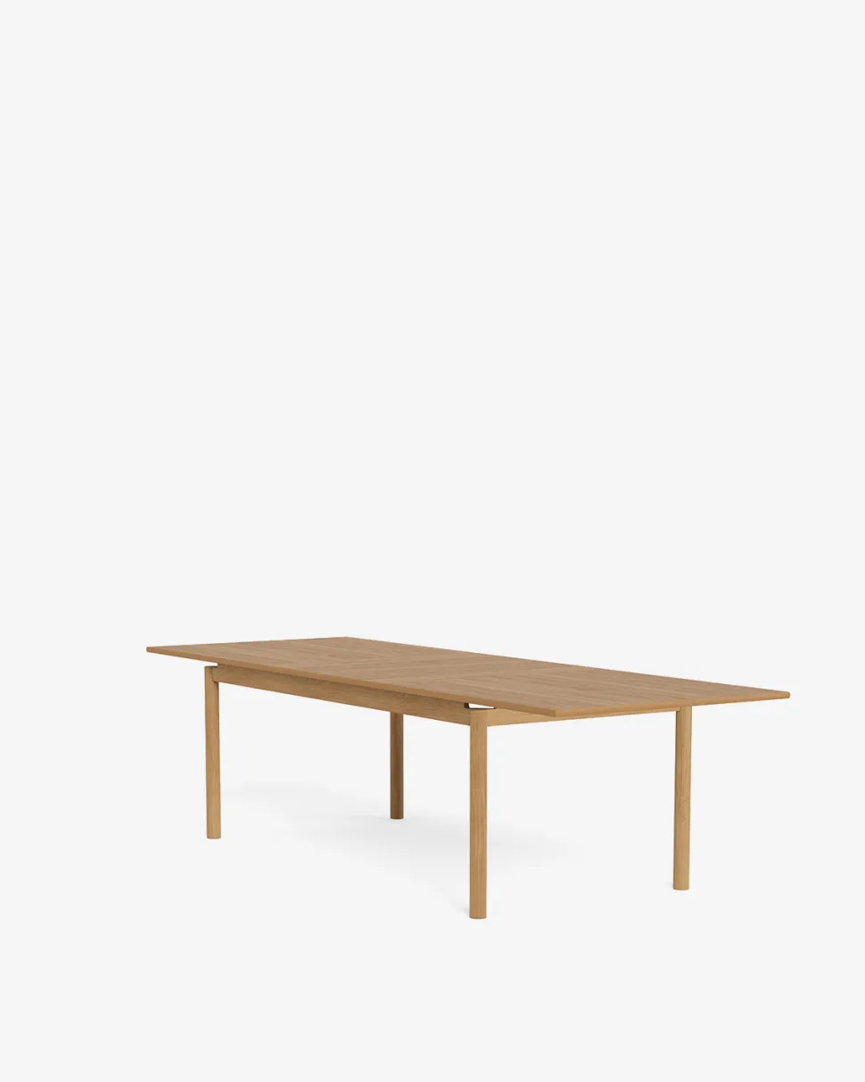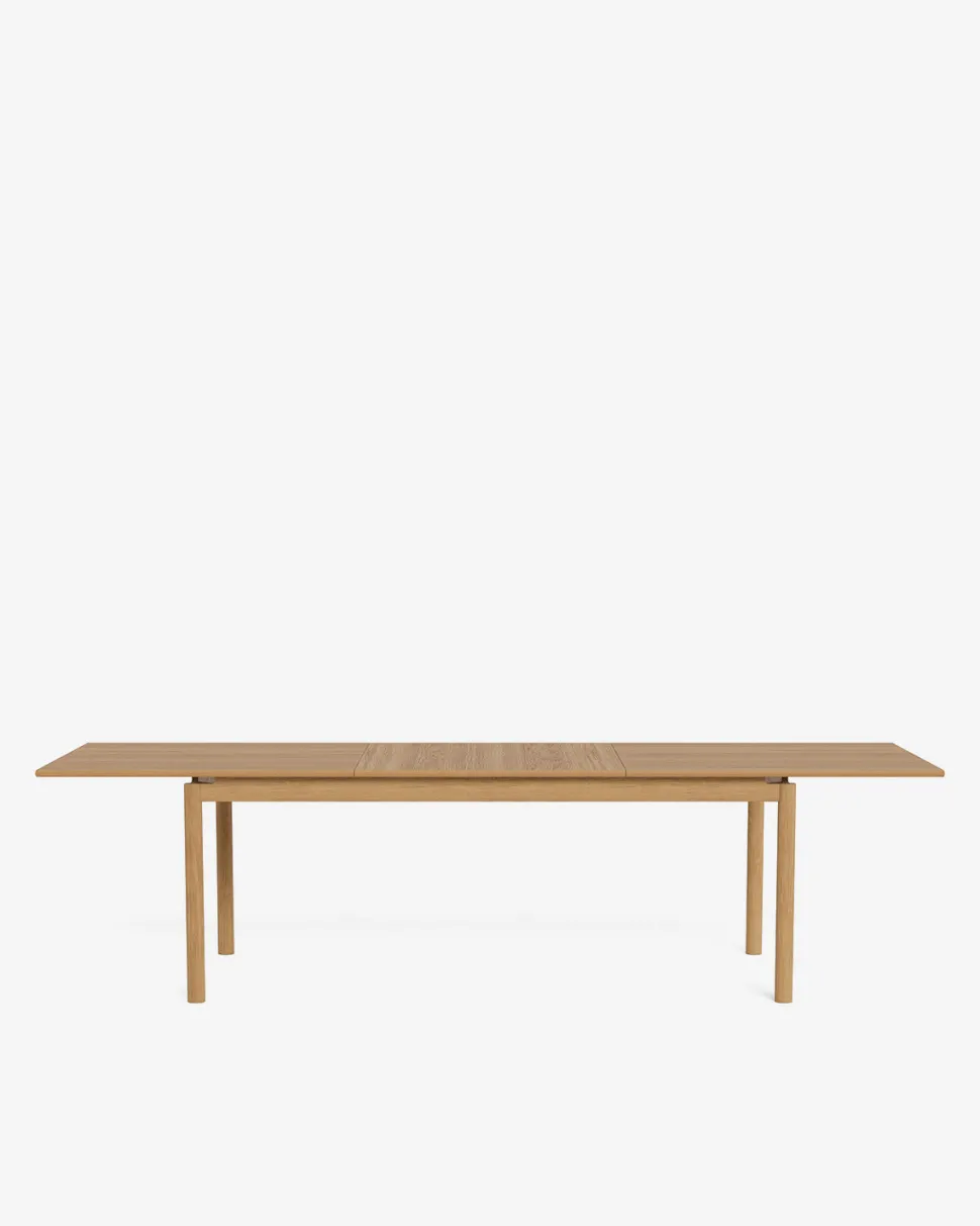 Tucson spisebord – let design med butterfly-udtræk. Tucson udvides nemt fra 200 til 290 cm og kombinerer elegant eg finer med praktisk bordplads til både hverdag og gæster.