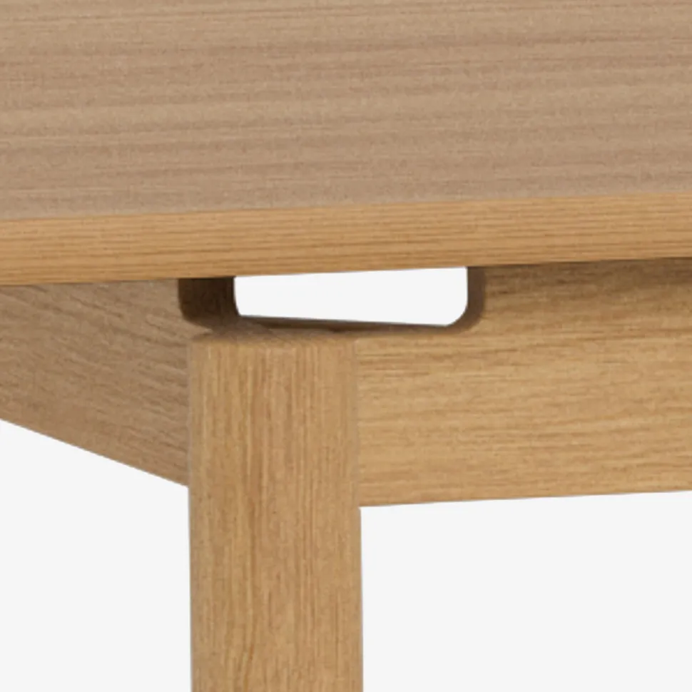 Tucson spisebordet kombinerer et let og moderne udtryk med praktisk funktionalitet. Bordpladen er udført i eg finer og hviler på et elegant stel, der giver et luftigt look omkring spisepladsen.