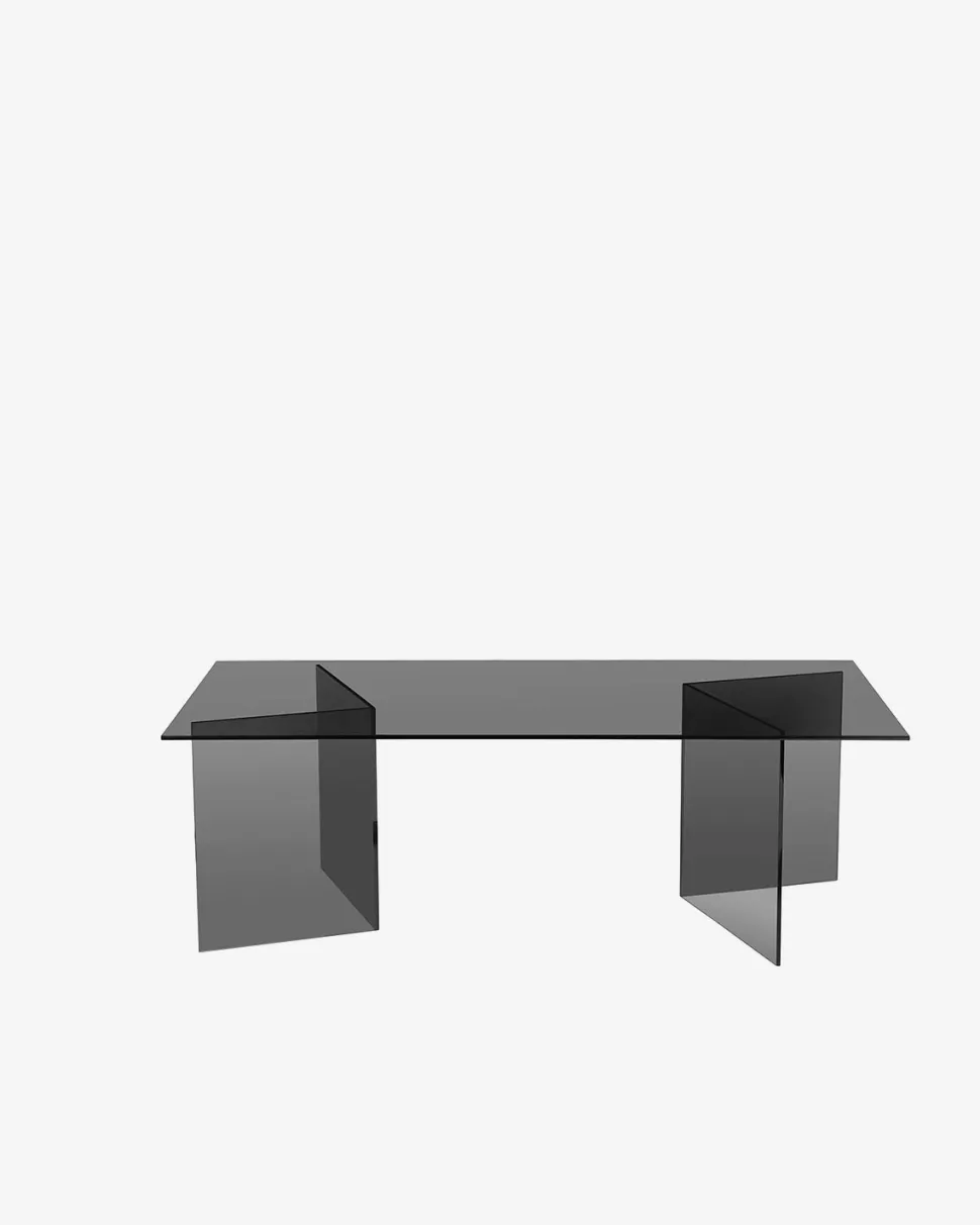 Det røgfarvede sorte glas reflekterer lyset smukt og skaber en sofistikeret stemning, der passer perfekt ind i både moderne og klassiske hjem. Sofabordets enkle design gør det nemt at kombinere med forskellige sofaer og materialer.